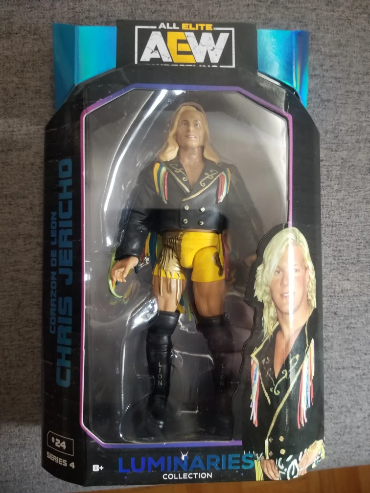 This is a brand new action figure, sealed in the box. The figure is part of the AEW Luminaries Collection. It comes with all accessories included.