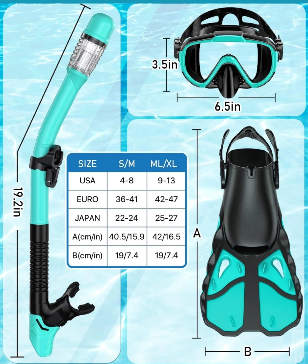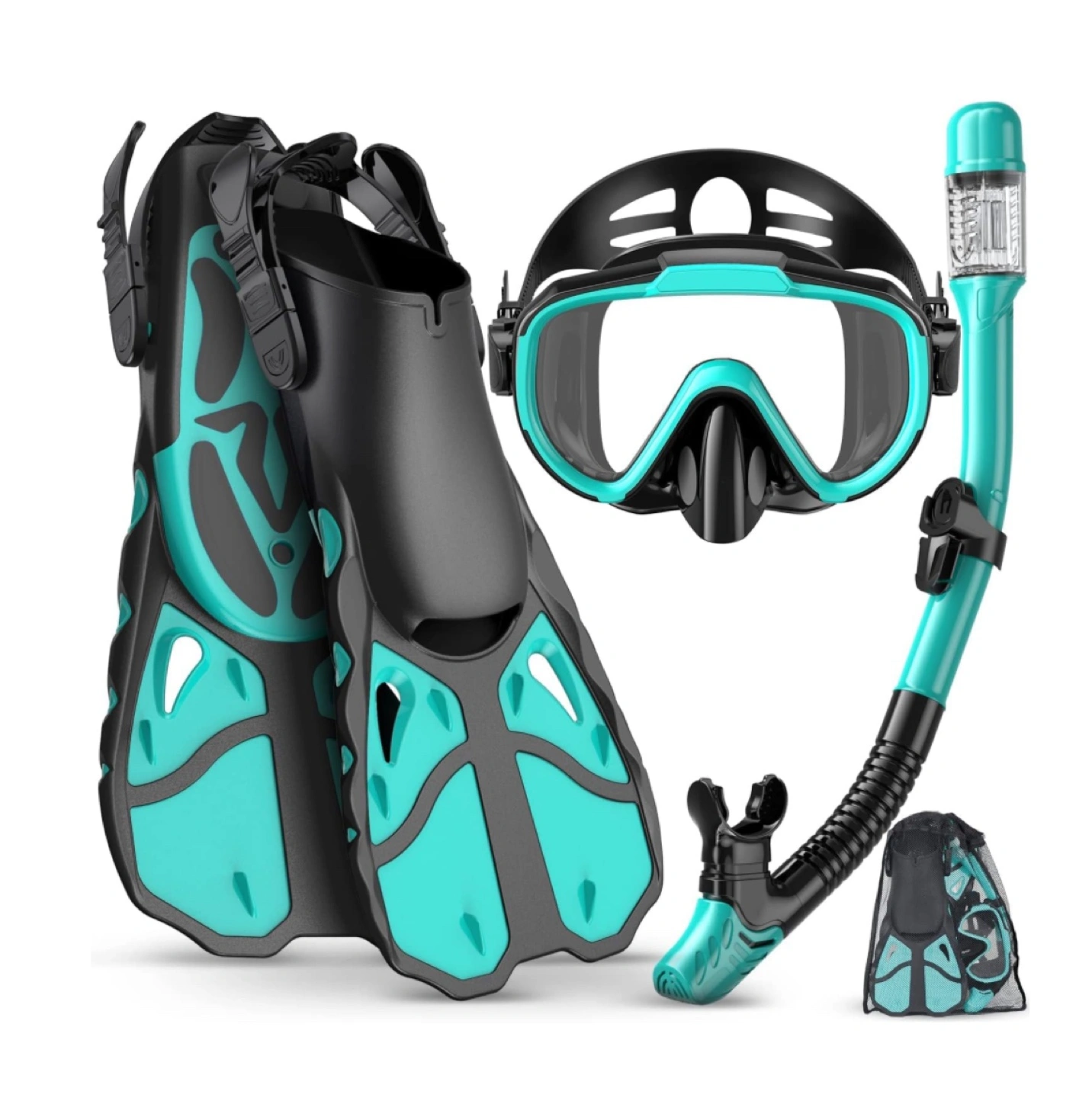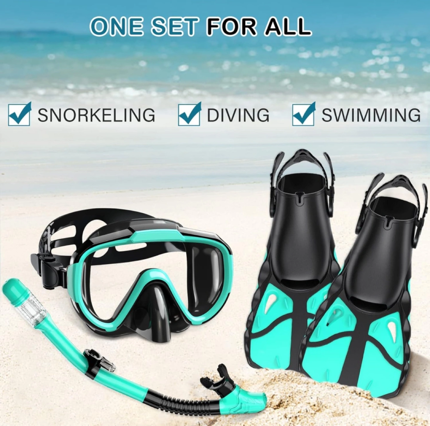 This set includes a snorkel, mask and fins in a convenient carrying bag. https://a.co/d/5Iopia3