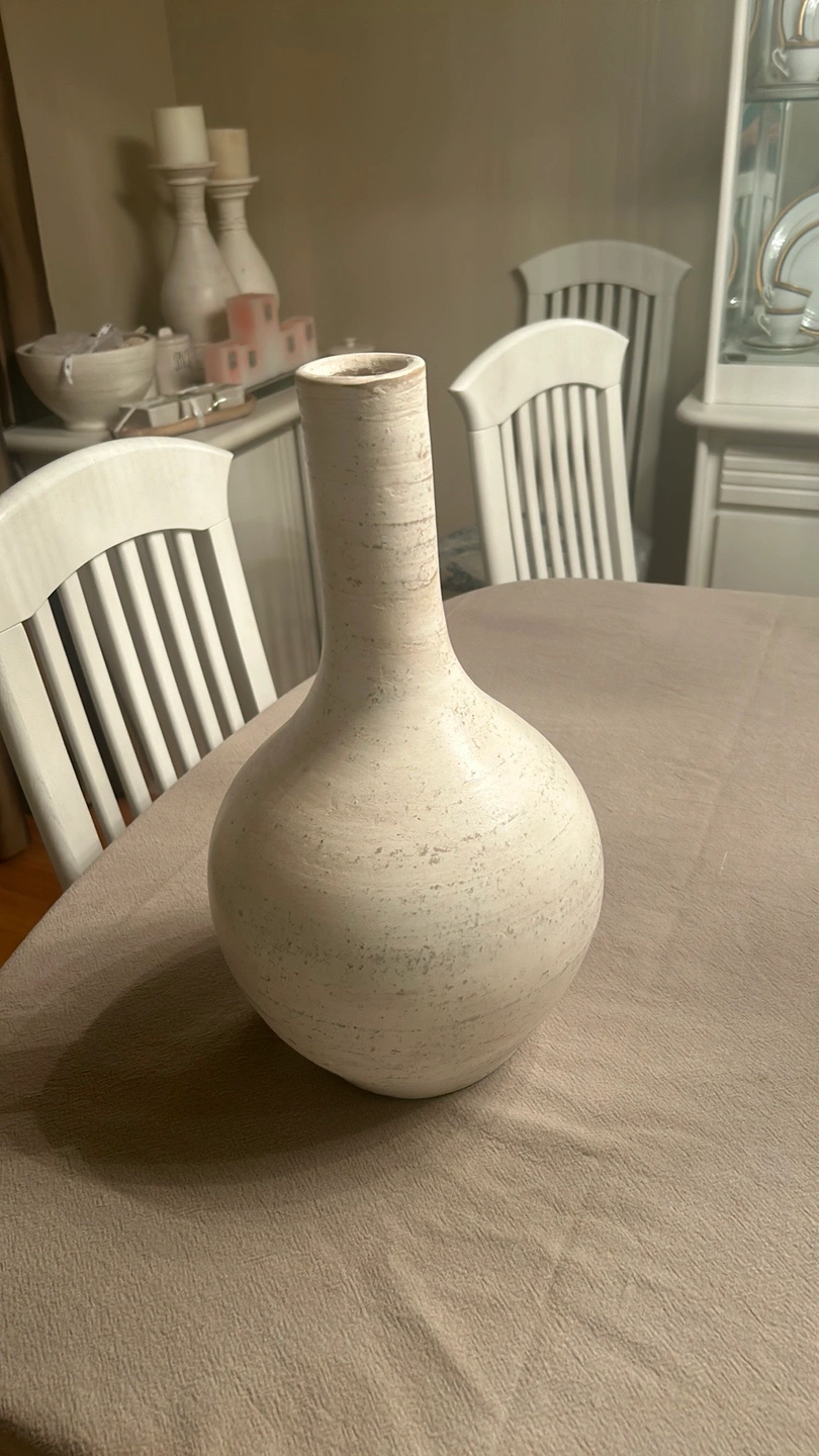 28This ceramic vase has a white speckled finish. It is a simple and elegant design, perfect for any home.