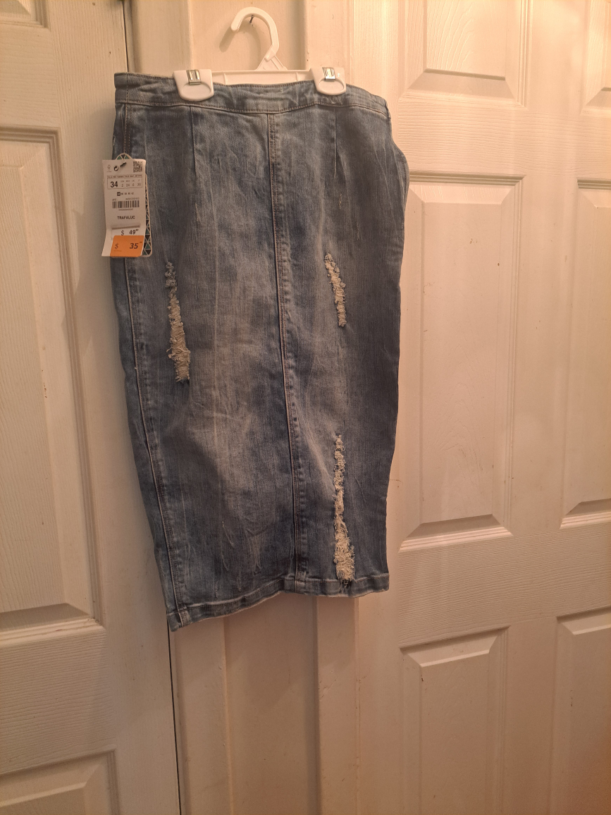 Zara Blue denim skirt with distressed details. Size 2. ZIPPER IS BROKEN