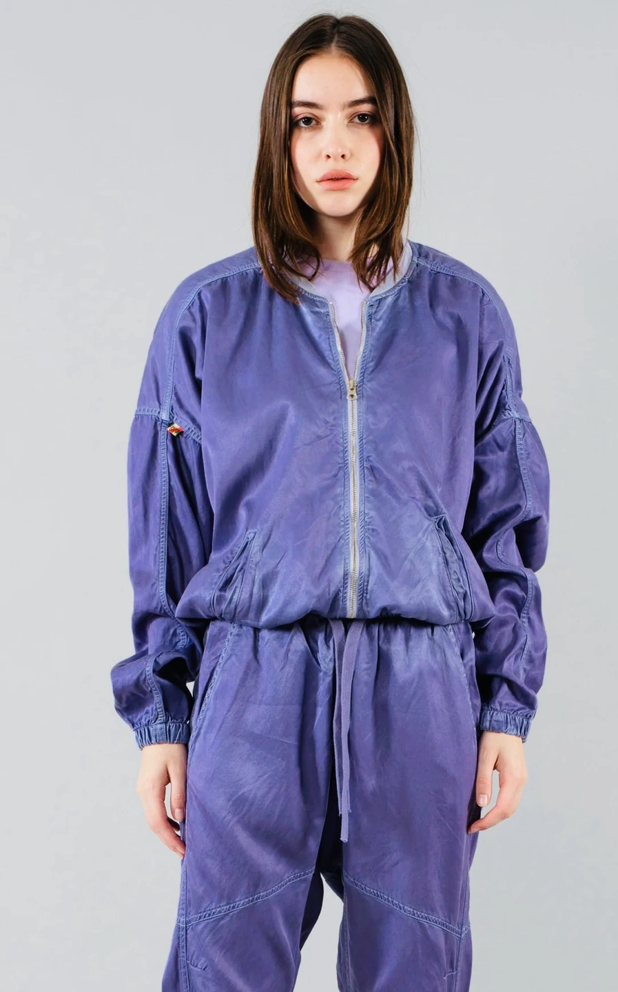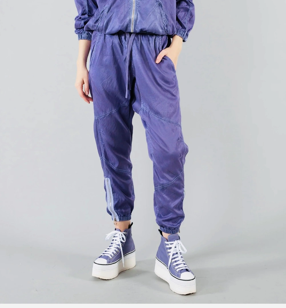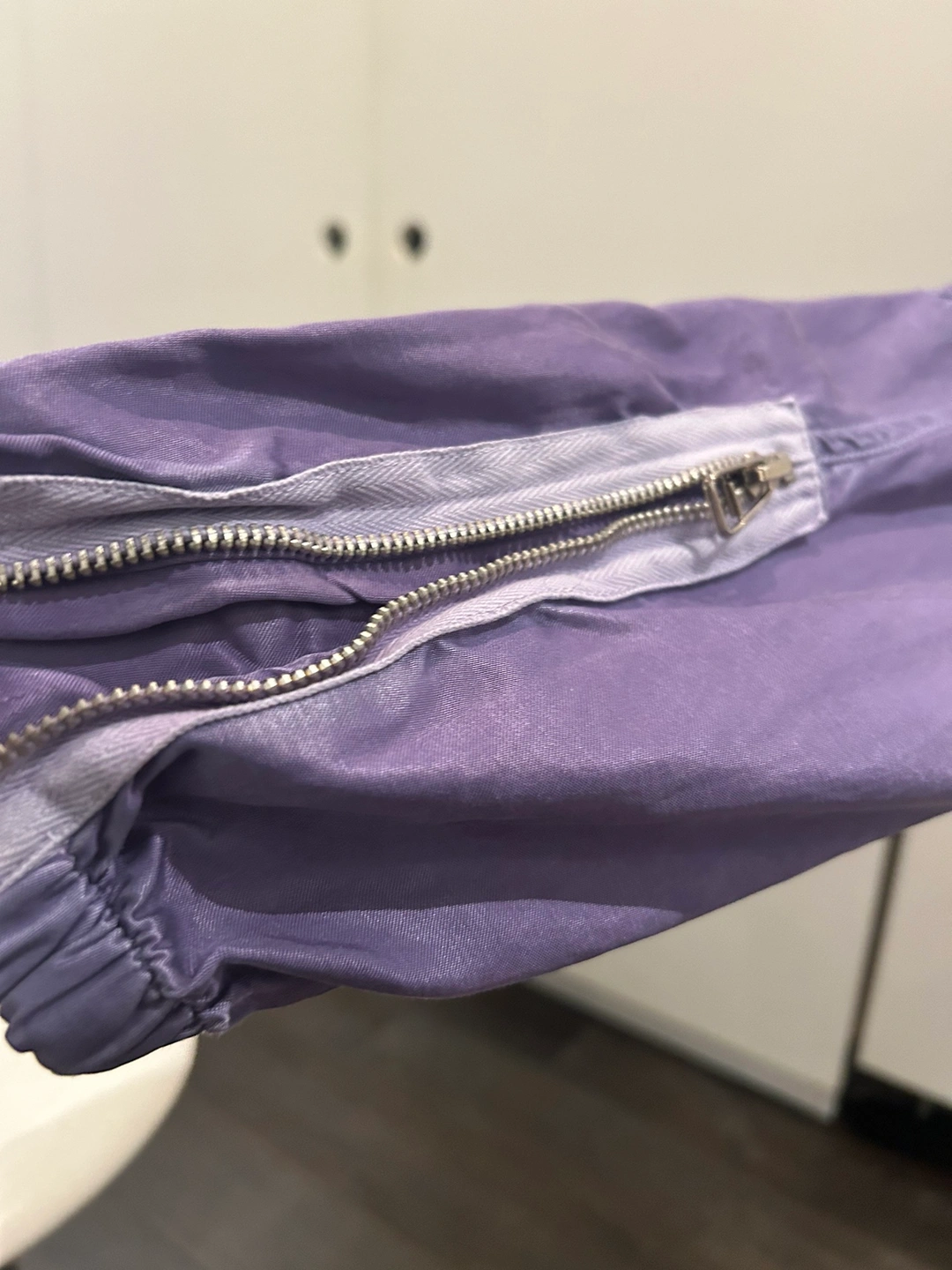 Free City brings you these stylish Purple Satin Parachute Pants in a size 6. Made from a luxurious blend of Cupro and Cotton, these lightweight pants feature an elastic waist with a drawstring for added comfort. The cropped length and straight leg design are accented with ankle zips & contrasting trim. Side pockets. Great luxurious fabric. I have shown the professional product shots in other colours but the colour being sold is purple. Just wanted to show proper fit and good quality photos. New with tags. Retailed for over $450.
