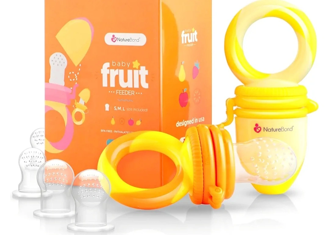 baby fruits feeders. original packaging. 2 feeders and different size silicone feeders.