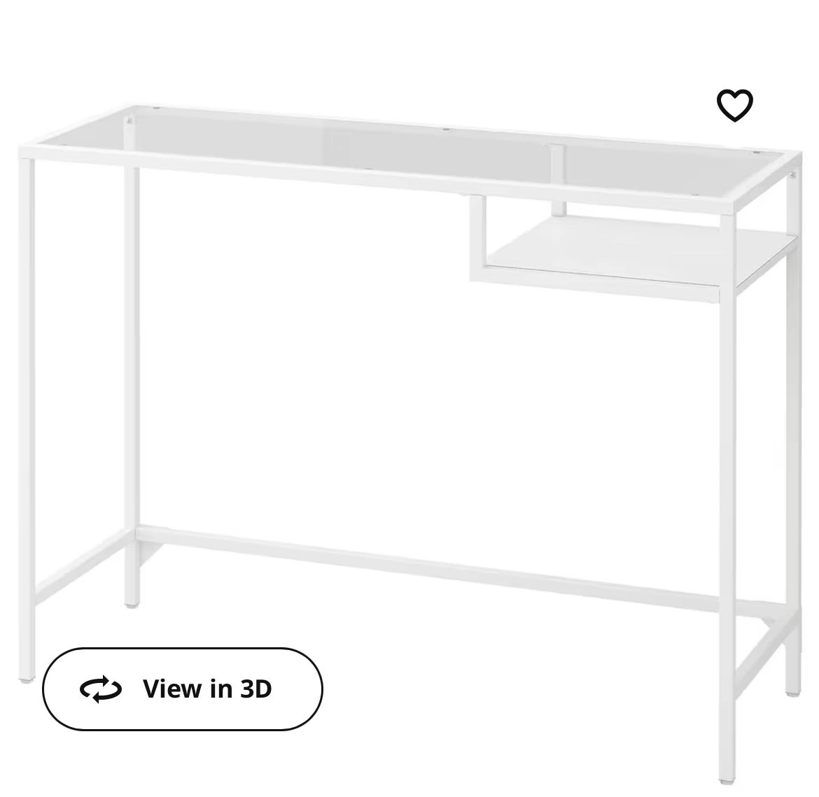 This desk is in great condition and features a glass top and a small shelf on the right side. It is perfect for a small space or home office.
