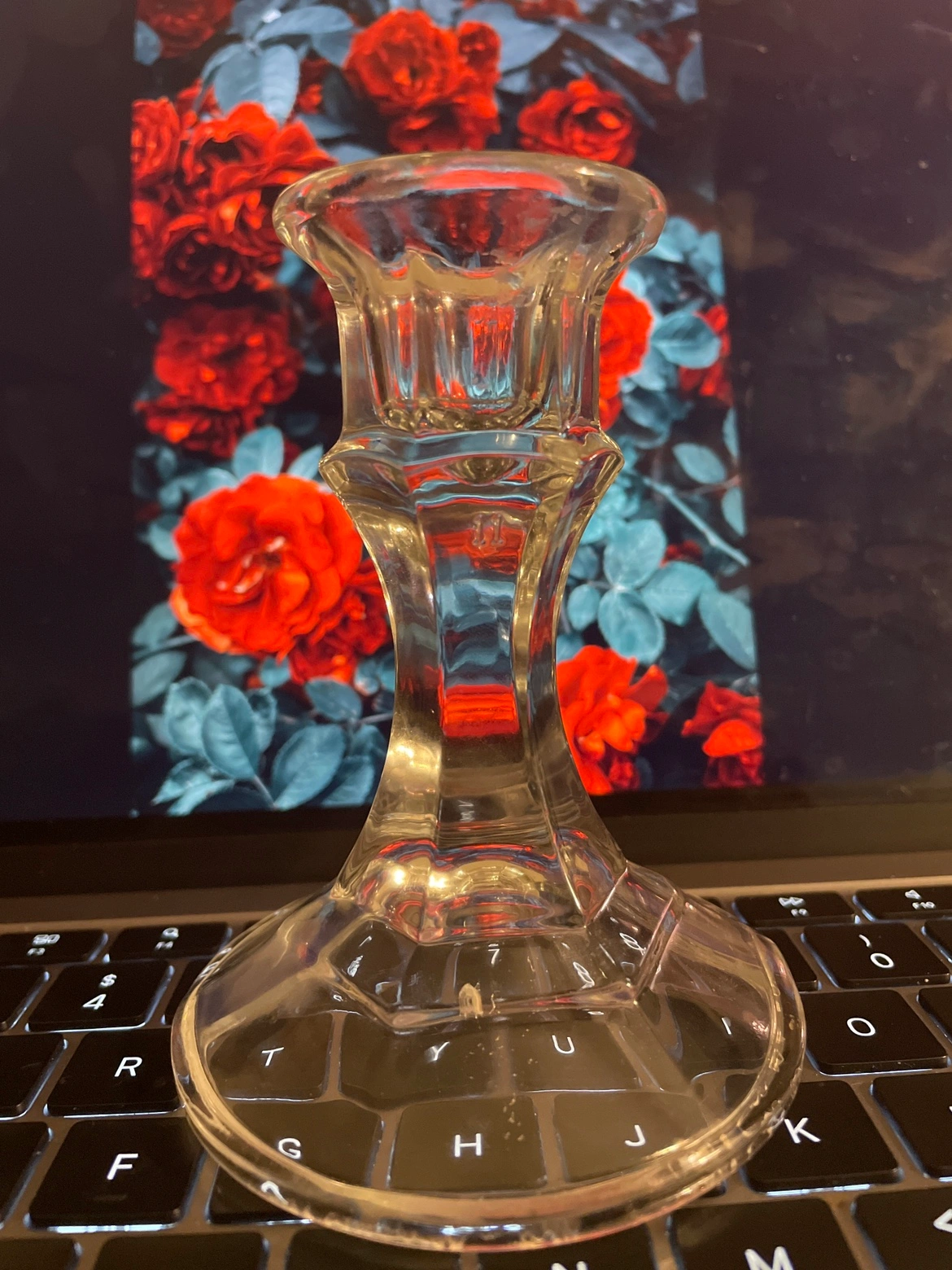 82A clear glass candlestick with a wide base. I have two.