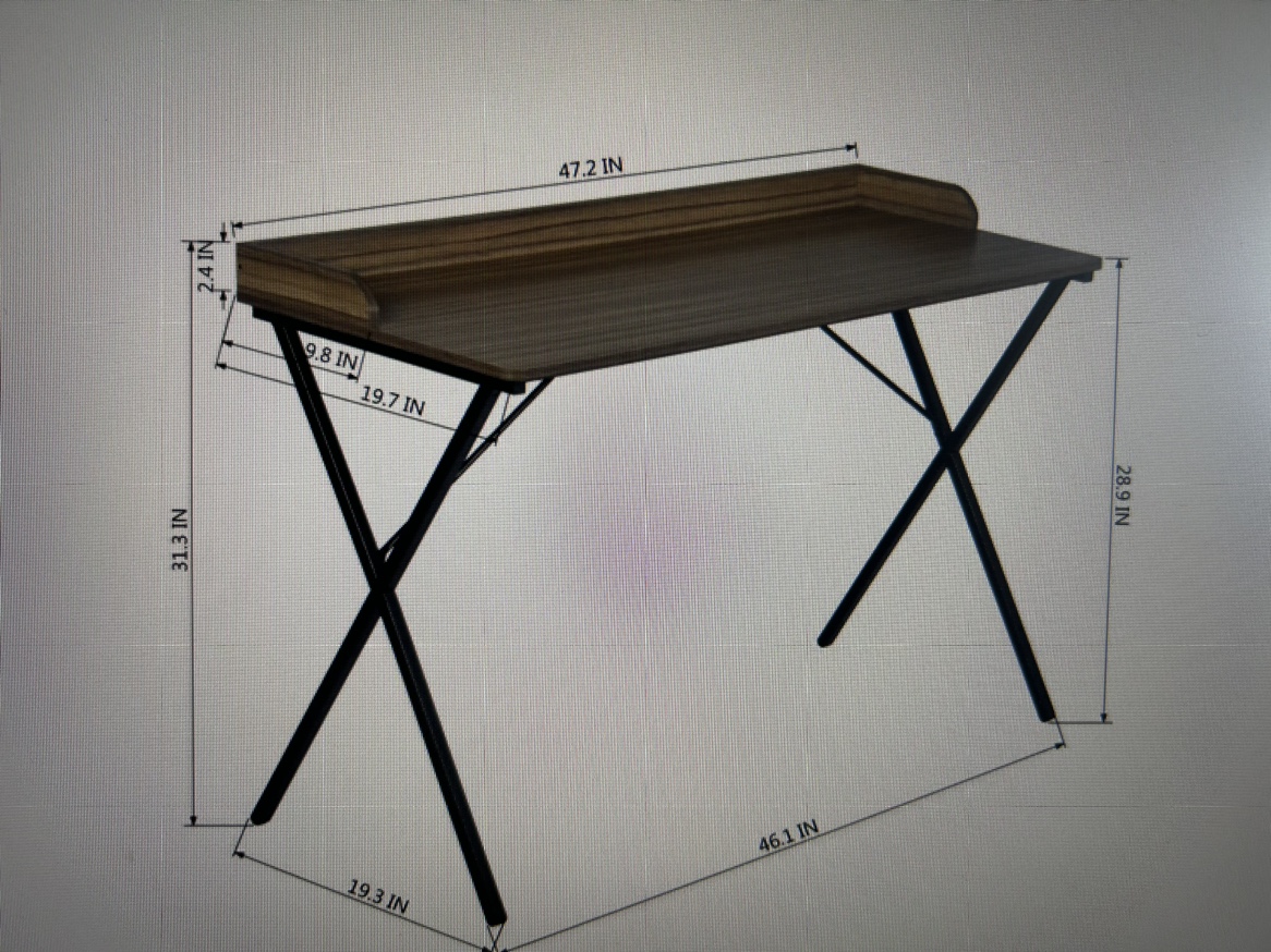 This desk is brown with black legs. It is in great condition, no scratches or stains. Measurement in the picture