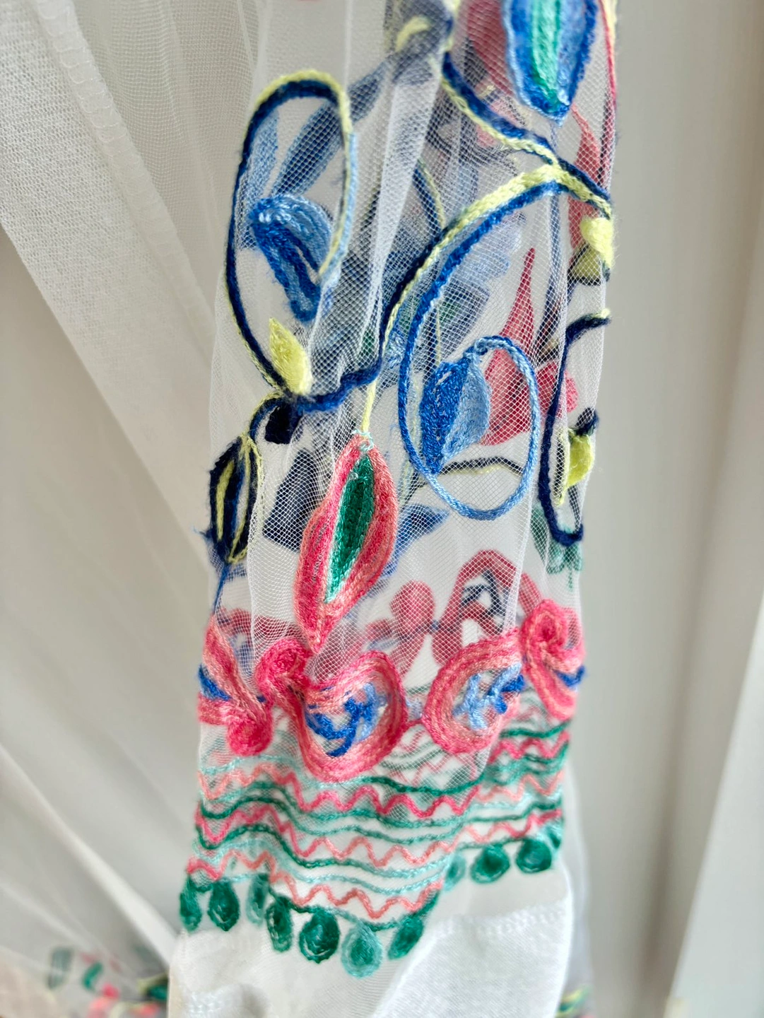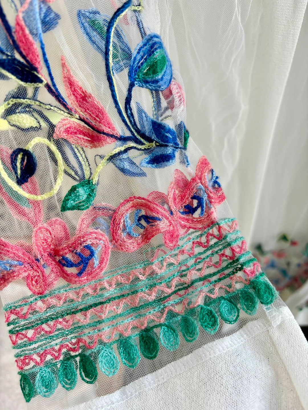687Pick up at Dundas and River It says size large but fits well for anyone. Beautiful and light and colourful! A lovely accessory