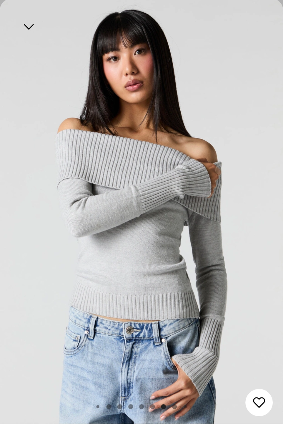 Grey knit sweater with long sleeves and an off the shoulder neckline. Size L. Doesn’t fit me. Only tried it on never worn 🌸