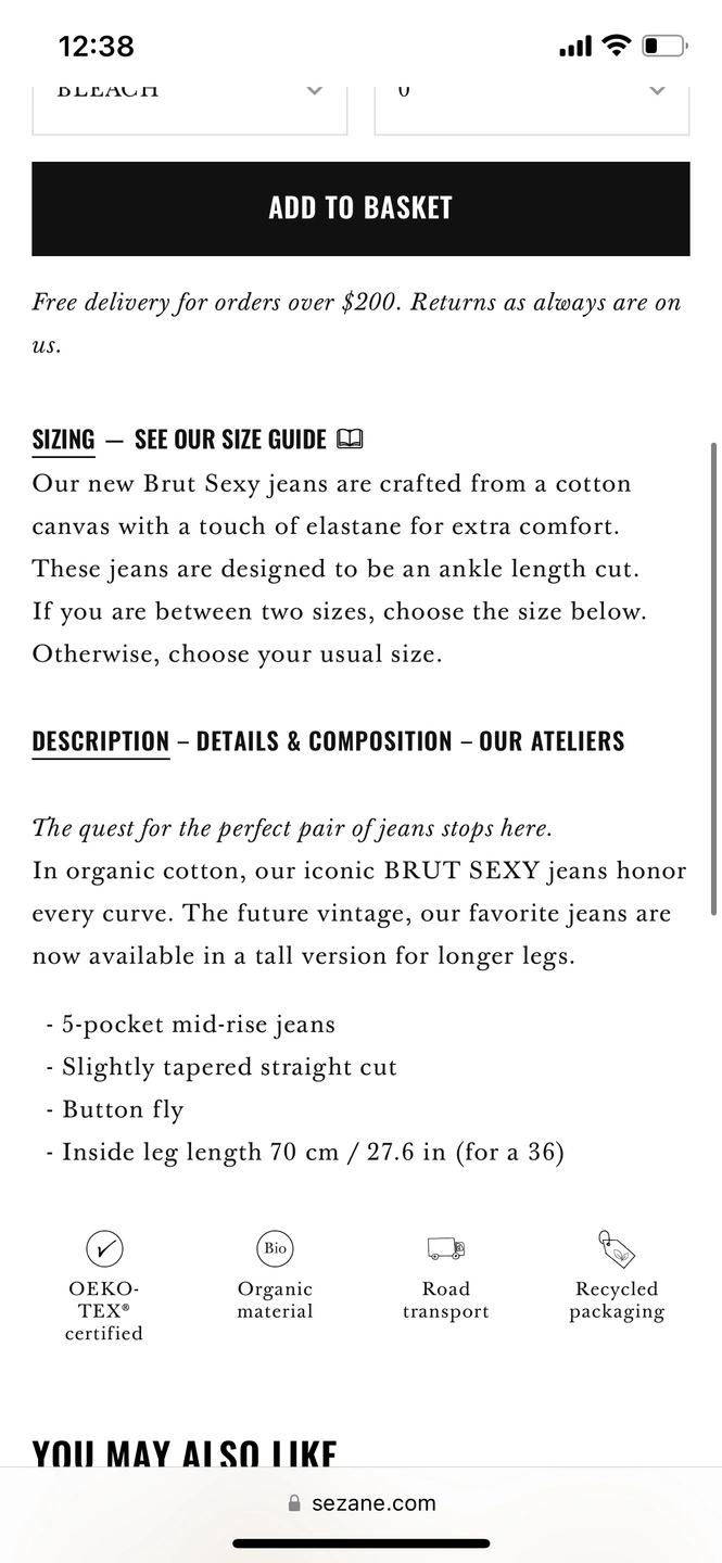 You can check the Sezane listing with size guide here: https://www.sezane.com/us/product/brut-sexy/bleach#size-0