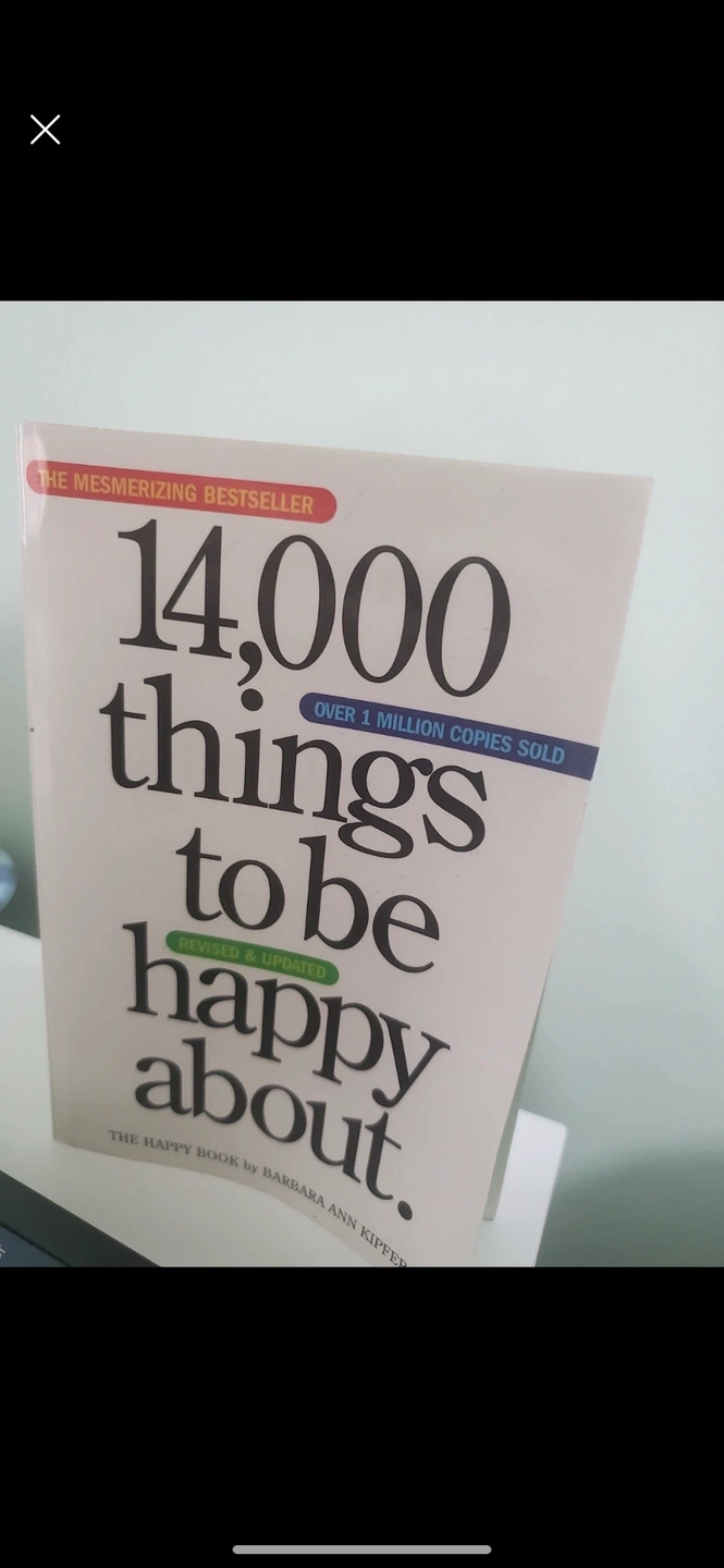1000+This is a book in good condition. It has a soft cover and is written by Barbara Ann Kipfer. It is The Happy Book. The book has been revised and updated. Over one million copies have been sold. It is a great read.