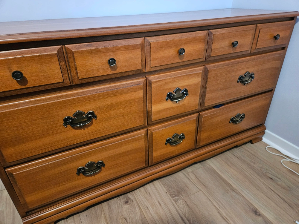 Beautiful dresser with 9 drawers in near mint condition.