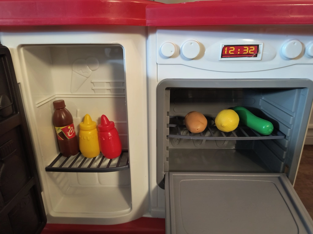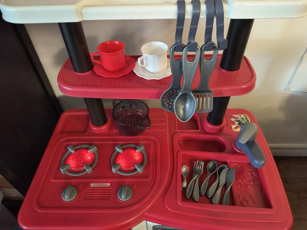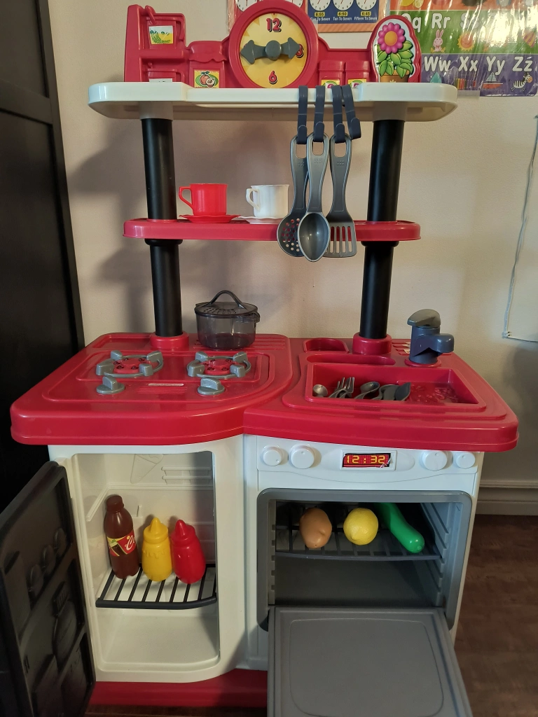 Comes with various play food and accessories. The stove has lights and makes sounds. There is a working fridge and oven. It is a great toy for imaginative play. Pick up near Century Park train station. Thank you.