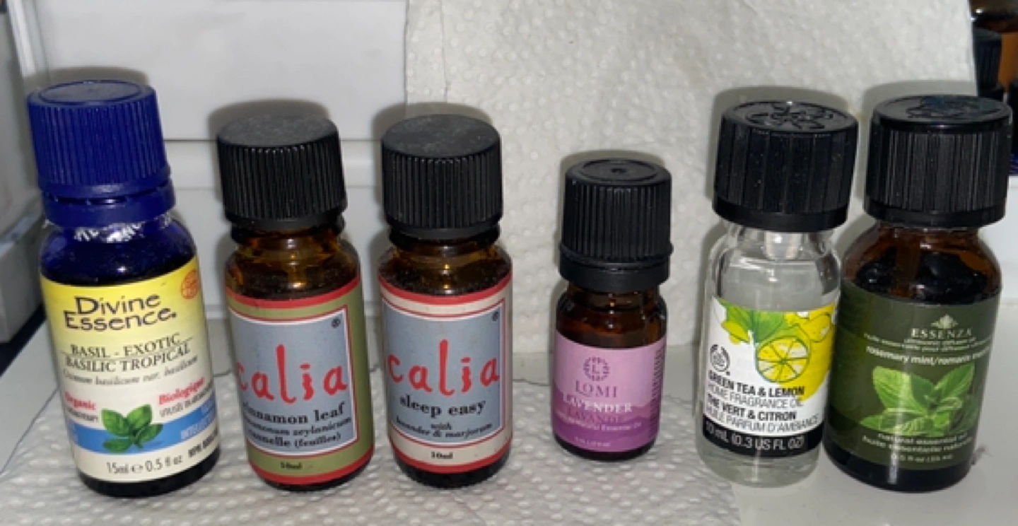 A set of 6 essential oils, perfect for aromatherapy or other home uses.