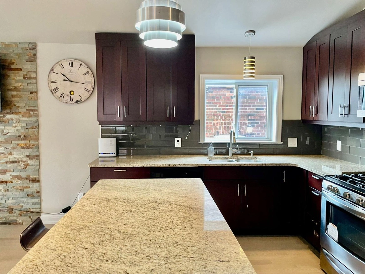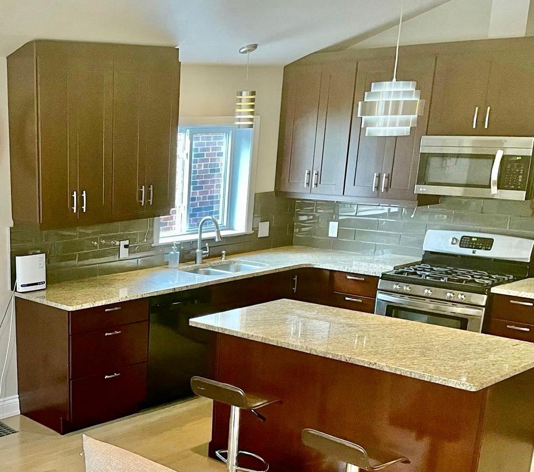Beautiful , well kept , Vintage style maple wood kitchen cabinets with doors and appliances for sale.