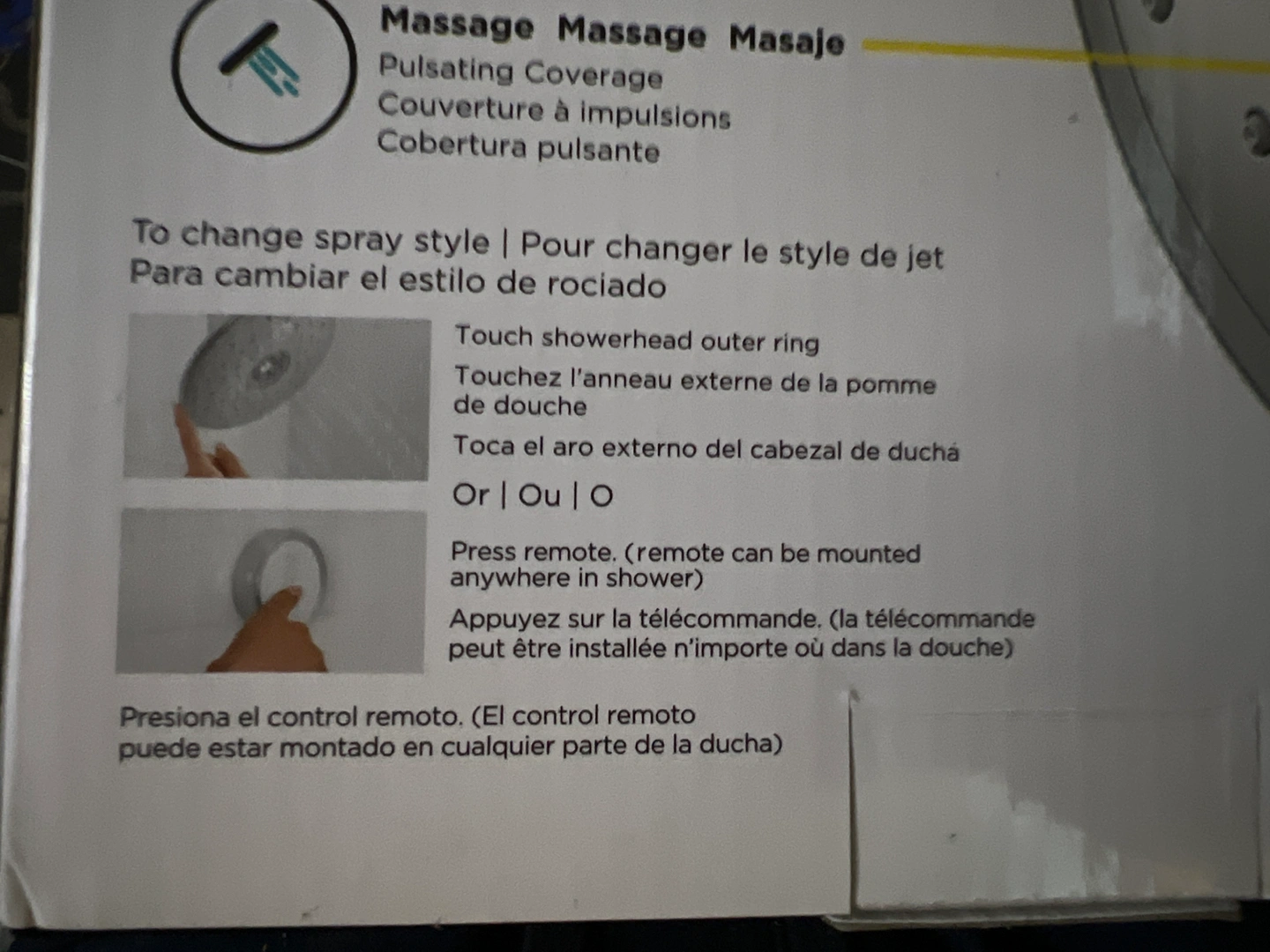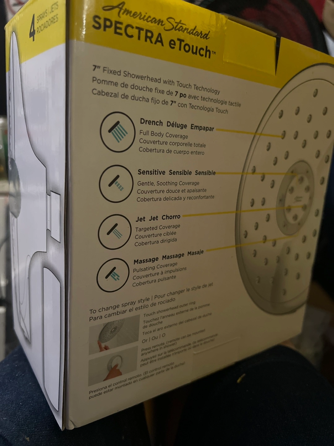 Remotely Control Sprays. - Conveniently mount the E touch remote anywhere in your shower then easily change the spray style by pressing the remote. Alternatively, spray styles can be changed by touching the showerhead outer ring.