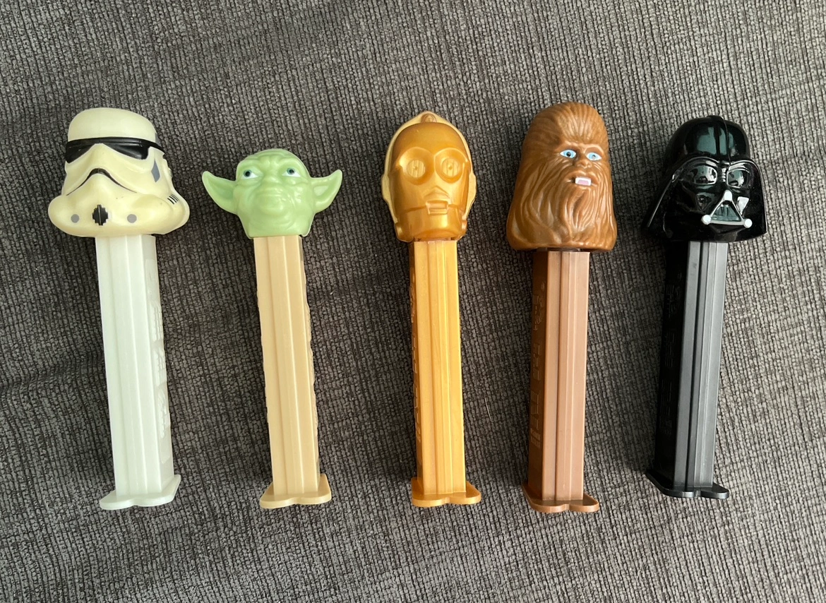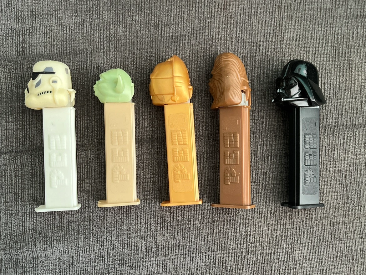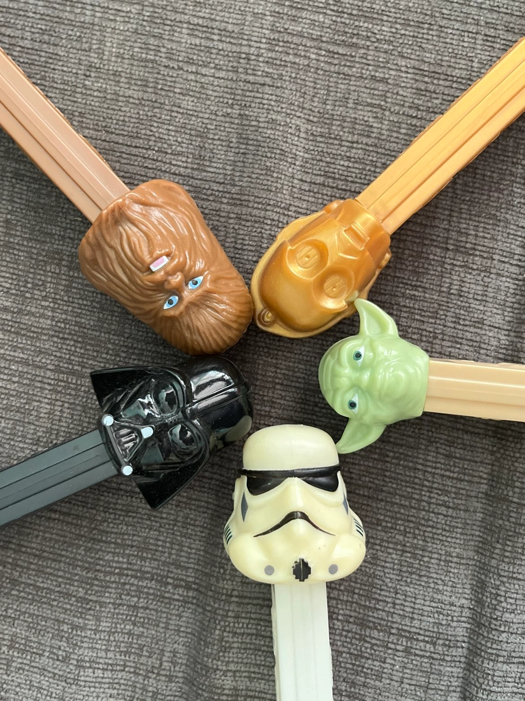 $10 for five Star Wars Pez dispensers from 1999 (this is the full set of five). Includes Darth Vader, Chewbacca, C-3P0, Yoda and a Stormtrooper. Pickup only. St. Clair West & Spadina Road area.