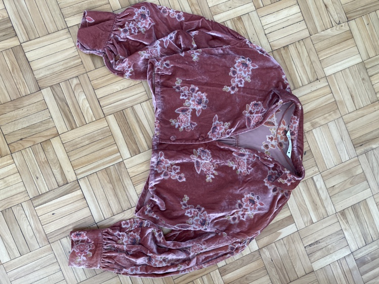 1 / 11 / 1Buy & SellZara Floral Velvet BlouseZara Floral Velvet Blouse$5Pink floral velvet button up blouse with long sleeves. Cropped oversized fit.ConditionGoodSizeXSBrandZaraWHERE TO MEETCheck LocationView MapSELLERverifiedElleAnnex37539 reviews0 chats·1 favorites·104 viewsSEND CHAT TO SELLERHi Elle! I’m interested in your listing.Hi Elle! I’m interested in your listing.Get the Karrot app to chatSign In to chat