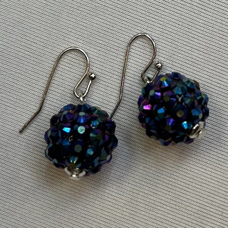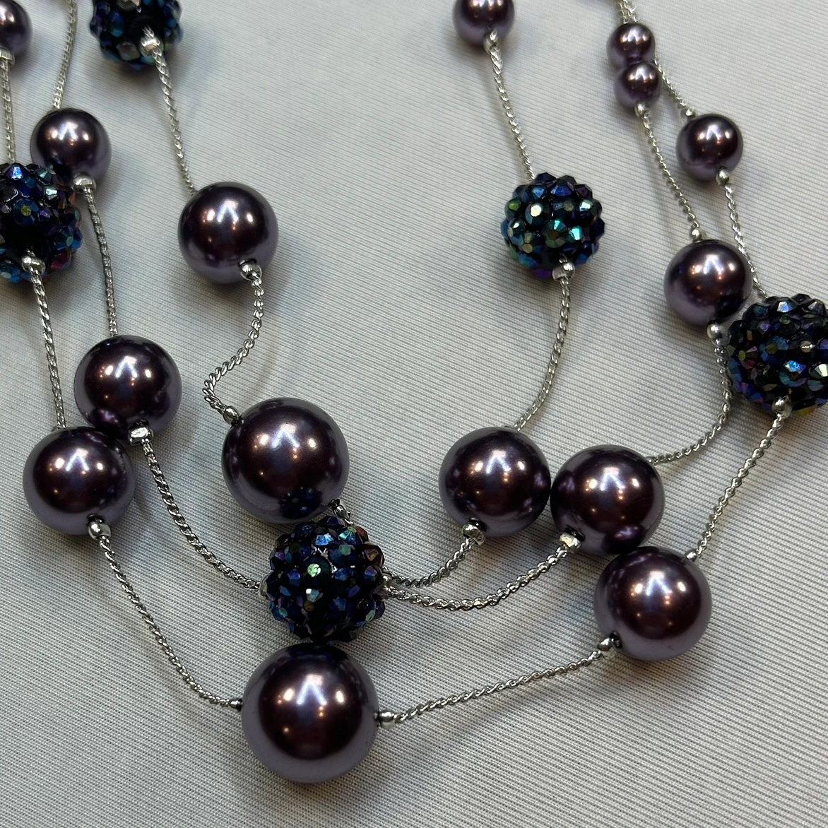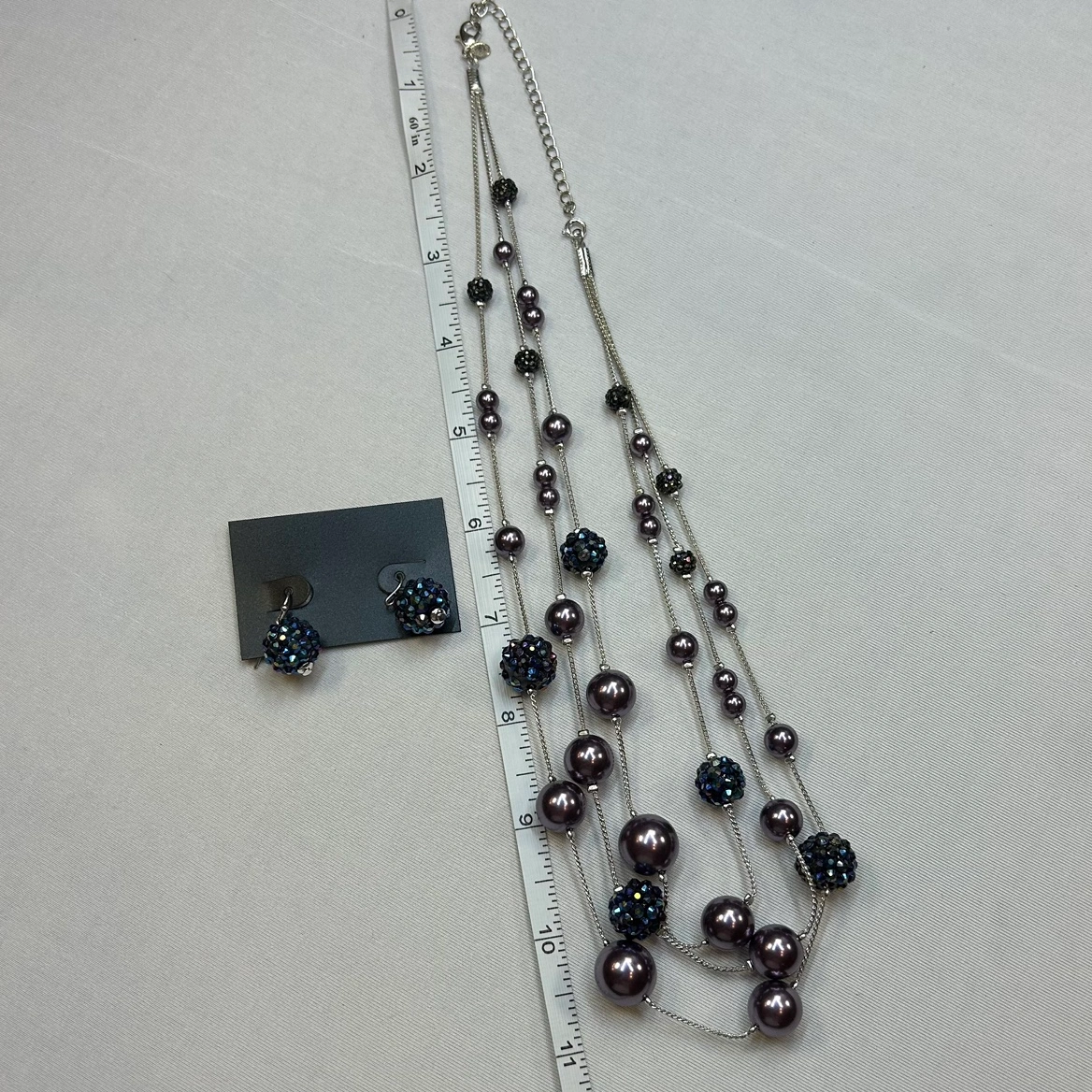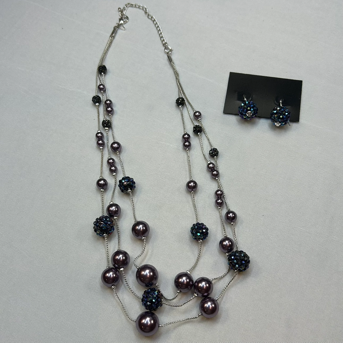 Elegantly crafted, this multi-strand purple and blue necklace and earring set features lustrous beaded accents and sparkling pave elements that catch the light with every movement. The necklace's cascading strands create a graceful silhouette, while the matching earrings offer a cohesive look. Perfect for adding a touch of glamour to any ensemble, this jewelry set promises to be a versatile addition to your collection. Worn only once. See photos for measurements. Cross posted.