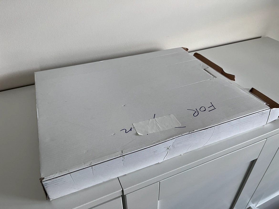 95This picture frame is perfect for a 3 x 5 inch photo and can hold another larger picture. It has a white frame with a wood grain finish.