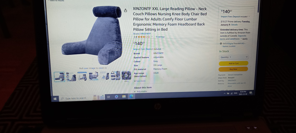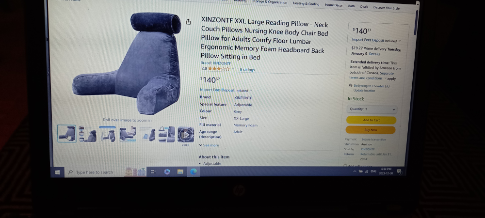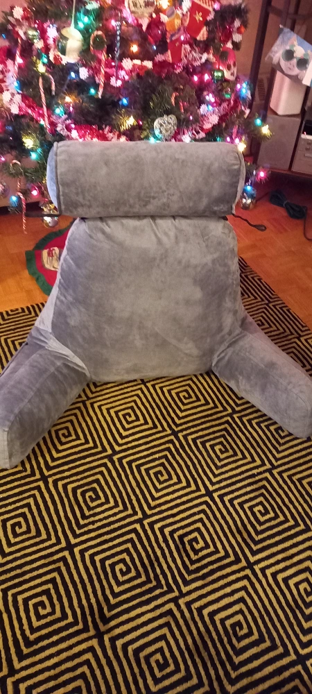 Large reading pillow, great for lounging. Got as a gift I don't use it. Big back on it that's why it's called a husband pillow. over a hundred elsewhere