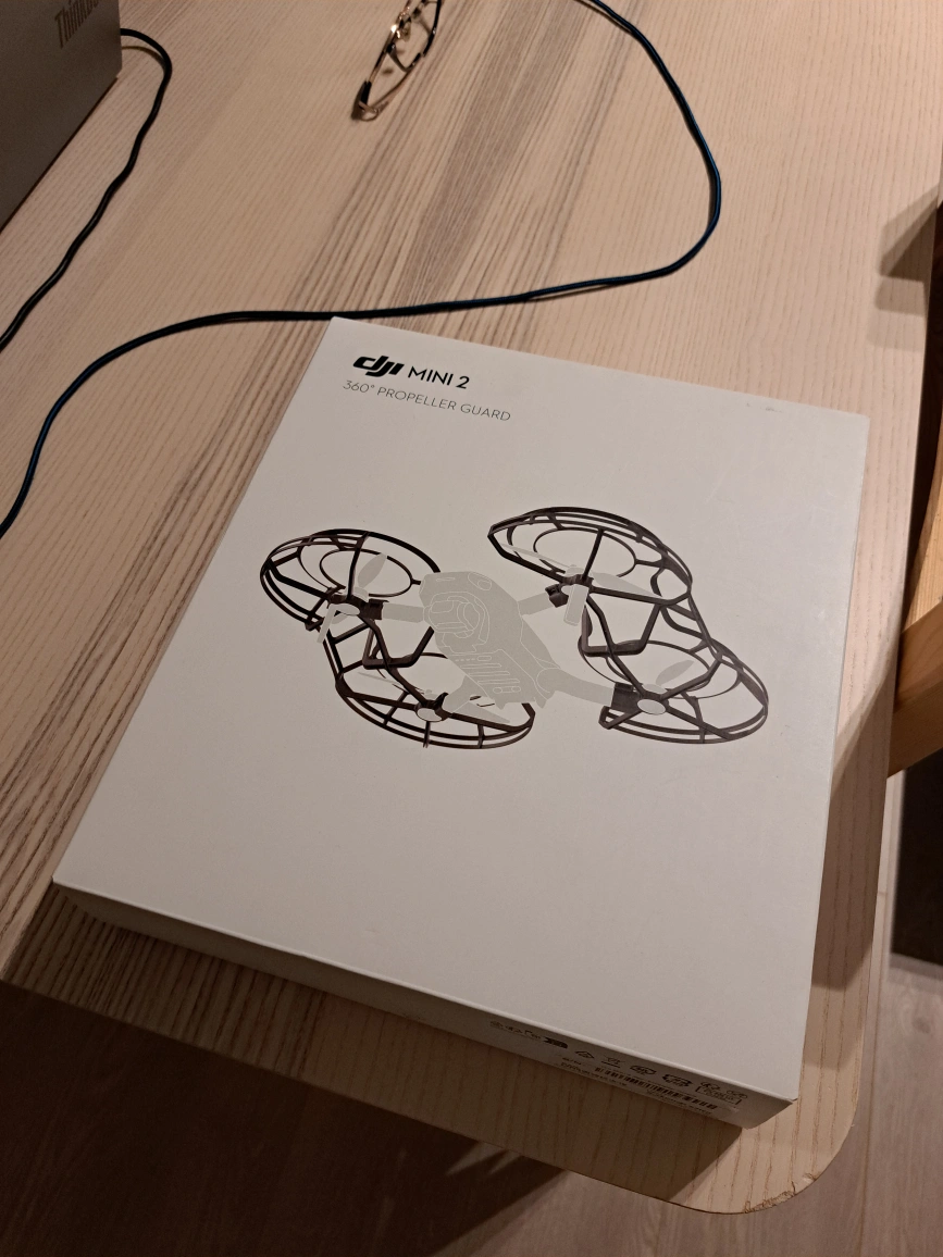 DJI Mini 2 360° Propeller Guard in its original packaging. The propeller guards protect the blades when the drone crashes into a wall or ceiling. Light contacts will keep the drone flying.