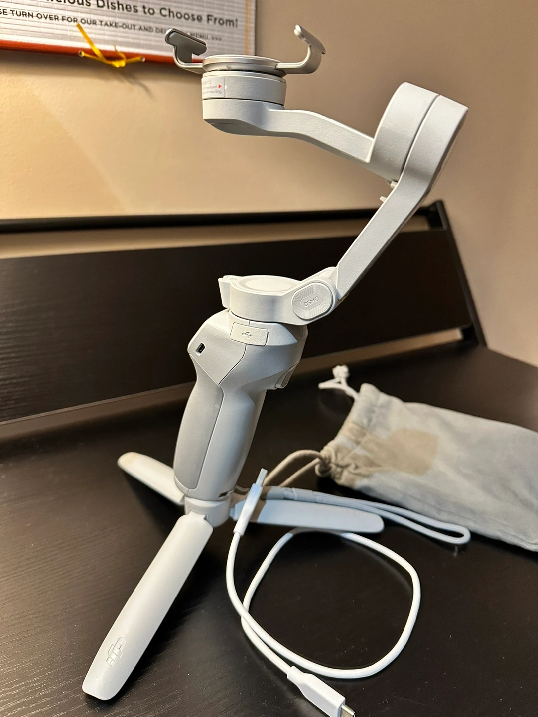 DJI OM 4 - Handheld 3-Axis Smartphone Gimbal Stabilizer with Grip, Tripod, Gimbal Stabilizer Ideal for Vlogging, YouTube, Live Video, Phone Stabilizer Compatible with iPhone and Android. Comes with charging cable, carrying case and mini tripod.