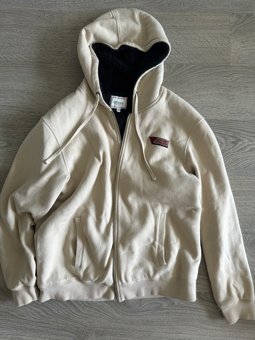 Selling for my mum! Beige fleece-lined hoodie. Cozy for the winter and fall. Pick up by Queen & Spadina