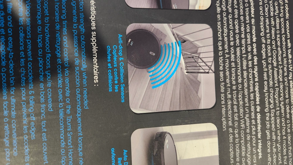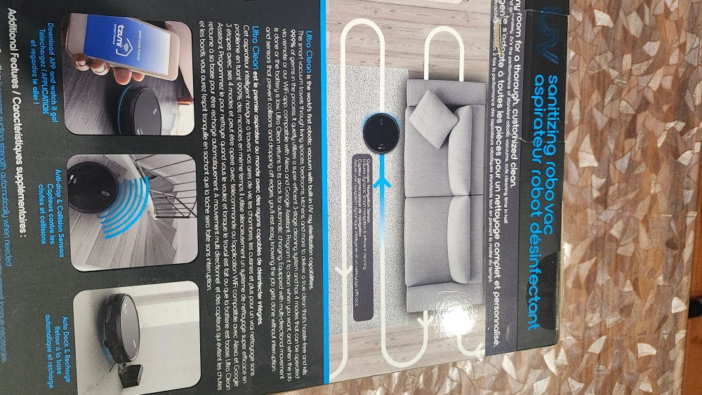1000+Robot vacuum cleaner, comes with charging dock and power cord. remote operated. fall.safe, covers all corners, has memory in built to remember the home structure, long battery life, docs and charges itself. voice prompts . uv cleaning enabled. bought for more than $300 plus tax. efficient and quiet, perfect on pet hair and dust , has powerful suction. no concerns or wear and tear at all.