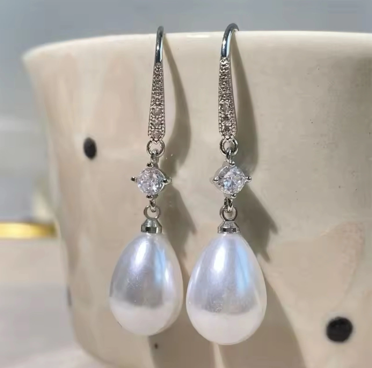 These are beautiful earrings with a pearl and crystal design. They are the perfect accessory for any occasion.
