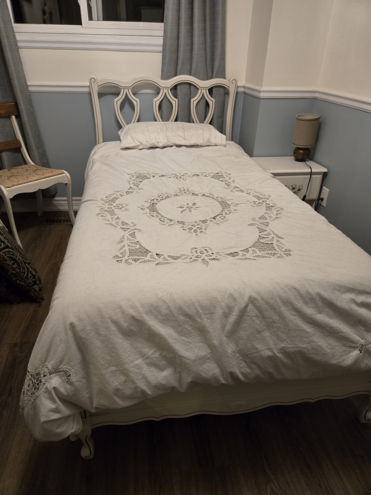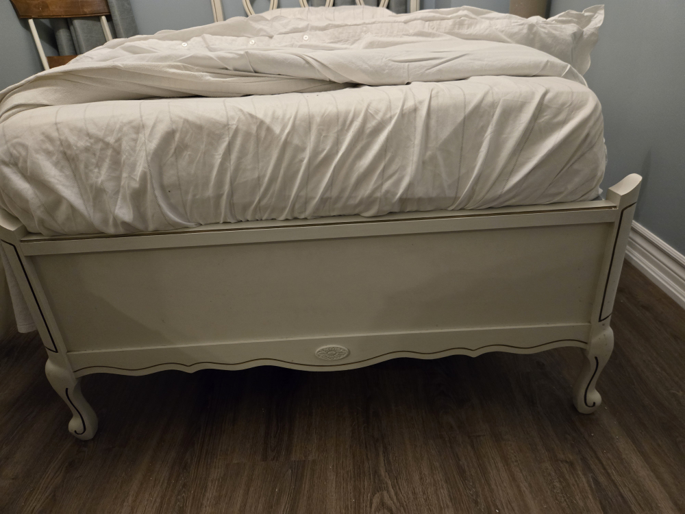 Twin bed - vintage frame, new box spring, mattress has been in a slip cover, so you are welcome to take that as well.