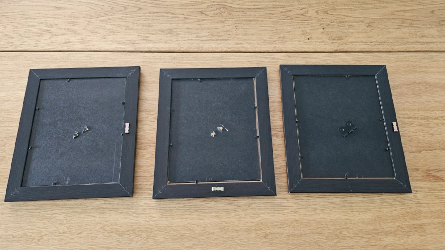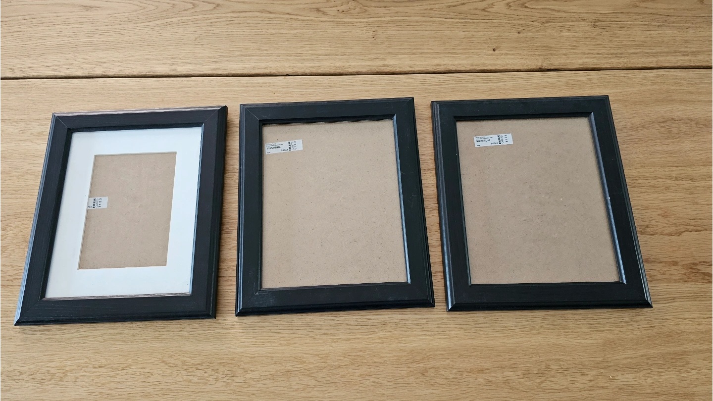 Three IKEA VIRSERUM frames. 12.5" x 10.5". A few slight scratches on frame. Two are missing the white mating.