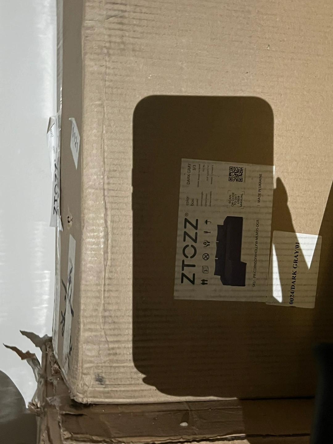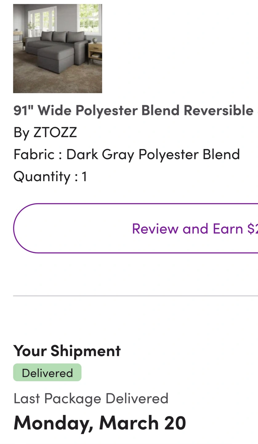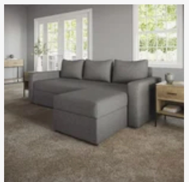 Grey Sectional Sofa with a chaise lounge. The sofa has a sleeper pull out feature. This sofa is made of polyester. The chaise side is on the side as pictured. Still in the box so I don’t have an assembled photo. Purchased last year for $1387 but never opened.