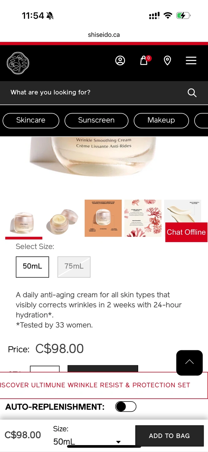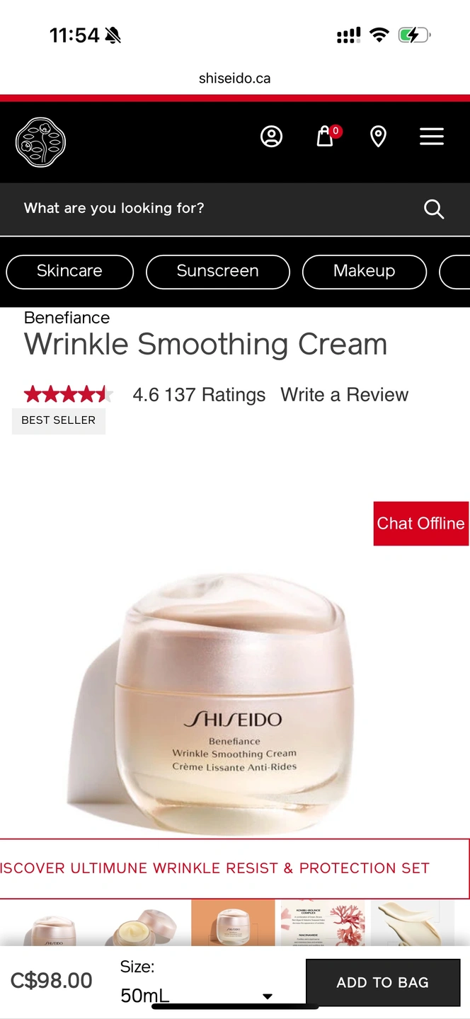 Price from Shiseido C$98/50mL (+tax)