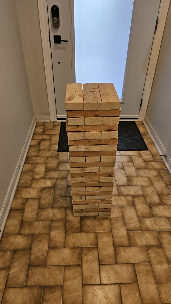 Buy & Sellgiant jengagiant jenga$20Available for pick up near Jane and Eglinton Ave W. Custom made giant jenga from reclaimed wood. Stands approximately 33" tall.ConditionGoodWHERE TO MEETpickup locationView MapSELLERverifiedCarloRockcliffe20912 reviews0 chats·0 favorites·10 viewsSEND CHAT TO SELLERHi Carlo! I’m interested in your listing.Hi Carlo! I’m interested in your listing.Get the Karrot app to chatSign In to chat