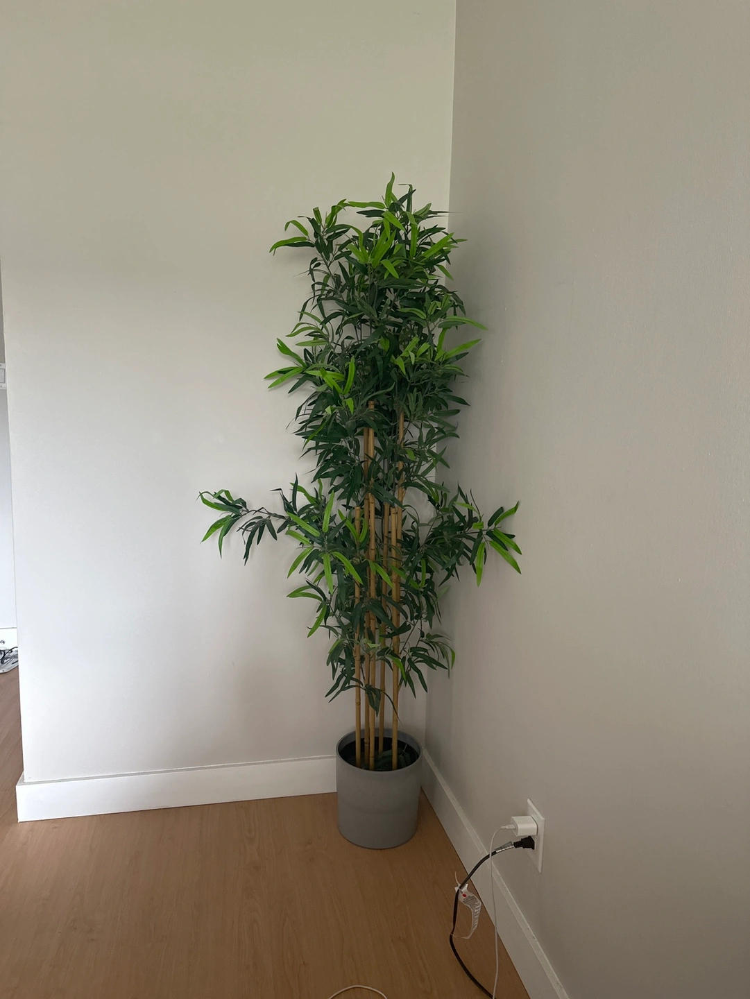 Large artificial bamboo plant comes with a grey pot. (It was bought seperately)