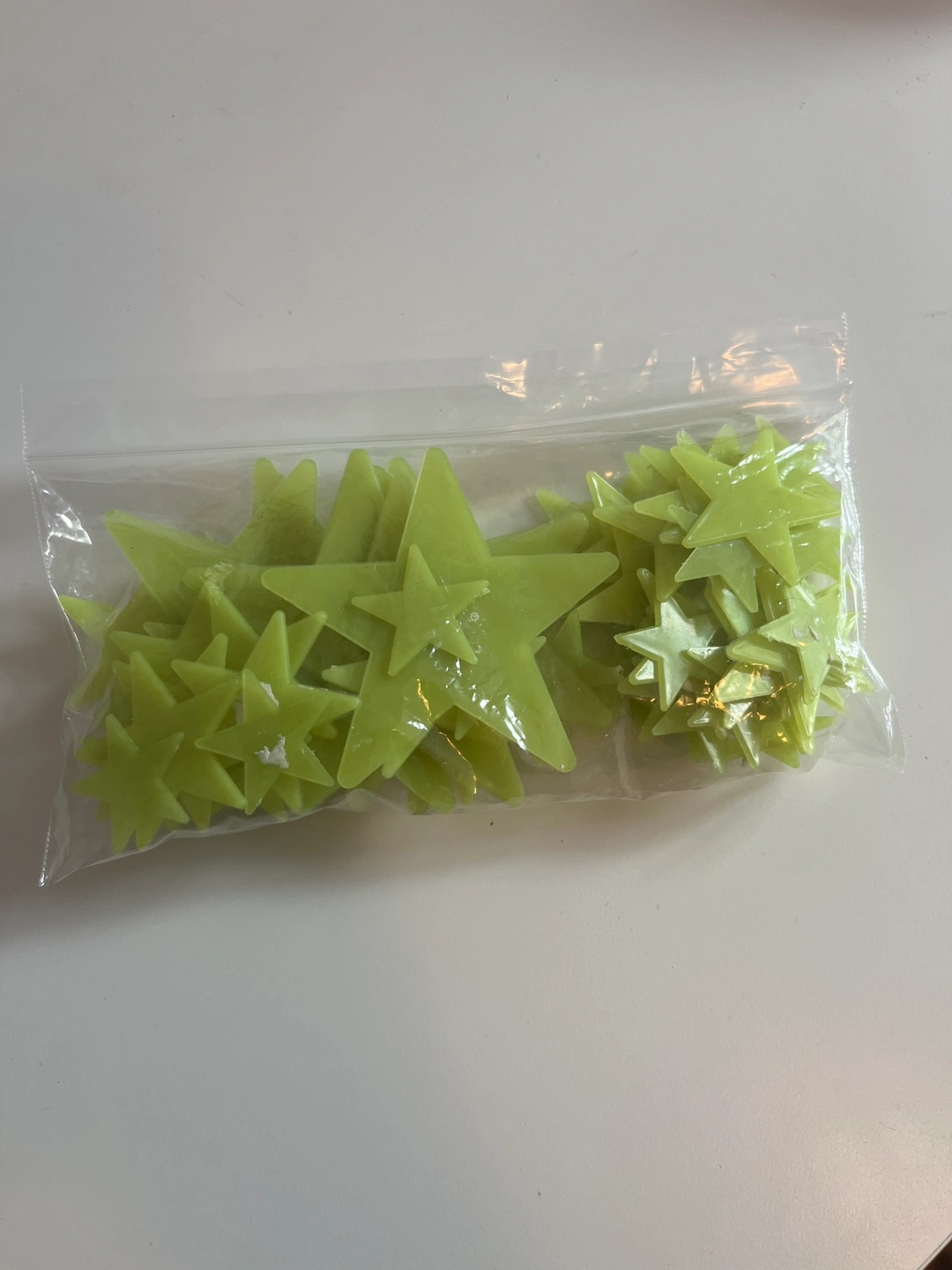A package of glow in the dark stars. They can be stuck to any smooth surface. Perfect for a child's bedroom or any room you want to add a little magic.