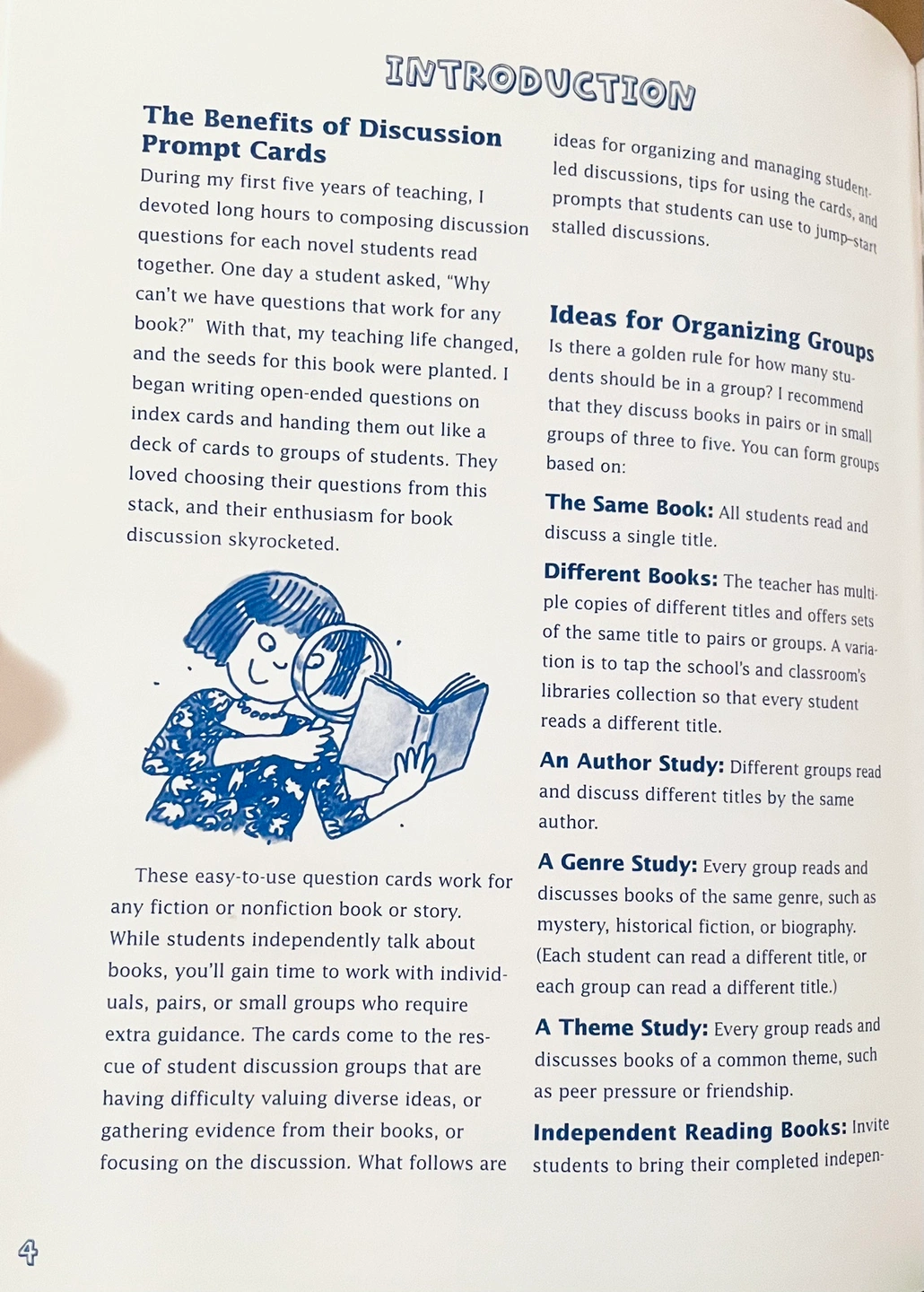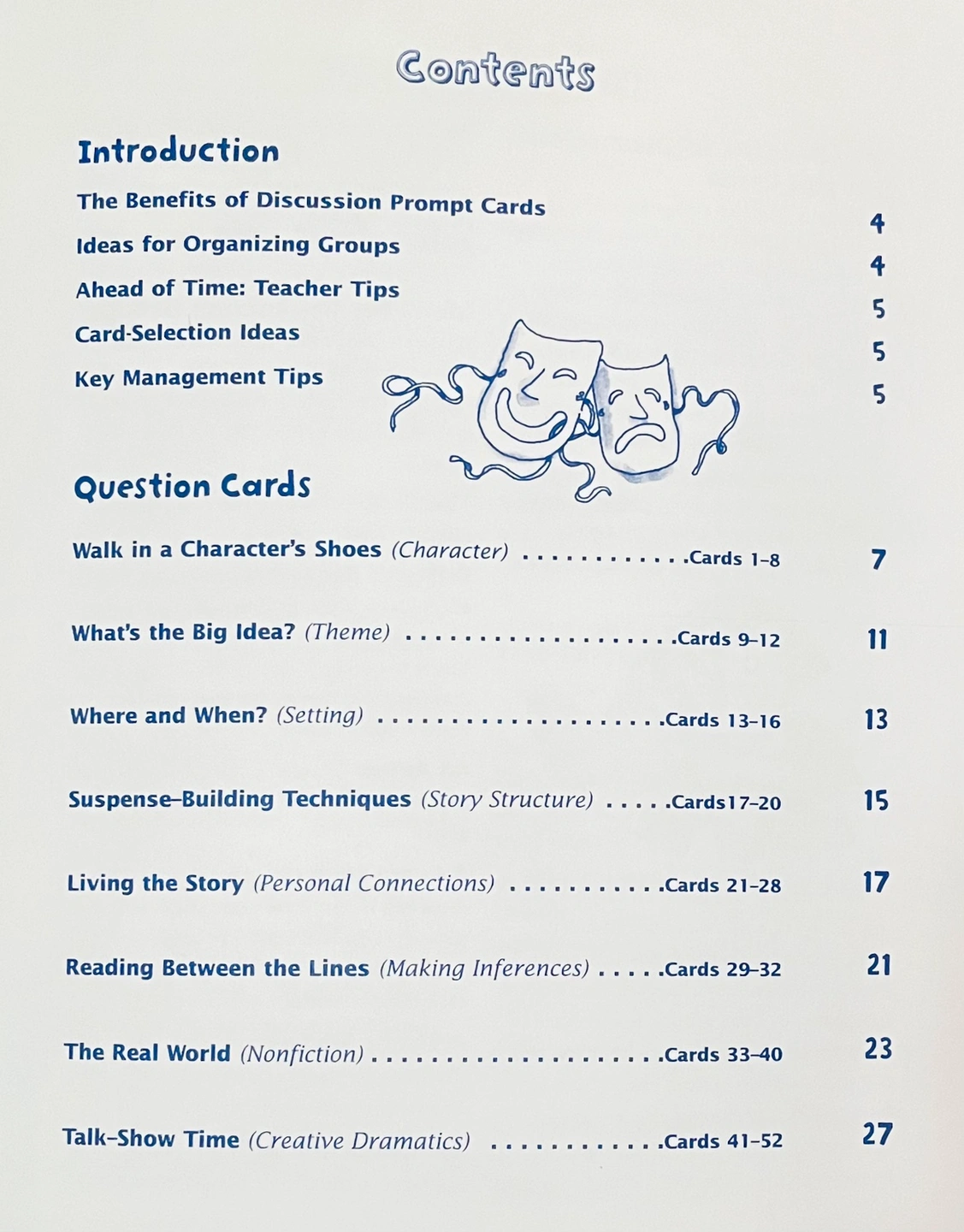 52 Fabulous Discussion Prompt Cards includes sturdy, kid-pleasing discussion-prompt cards which will get students really talking and thinking about the books they read.
