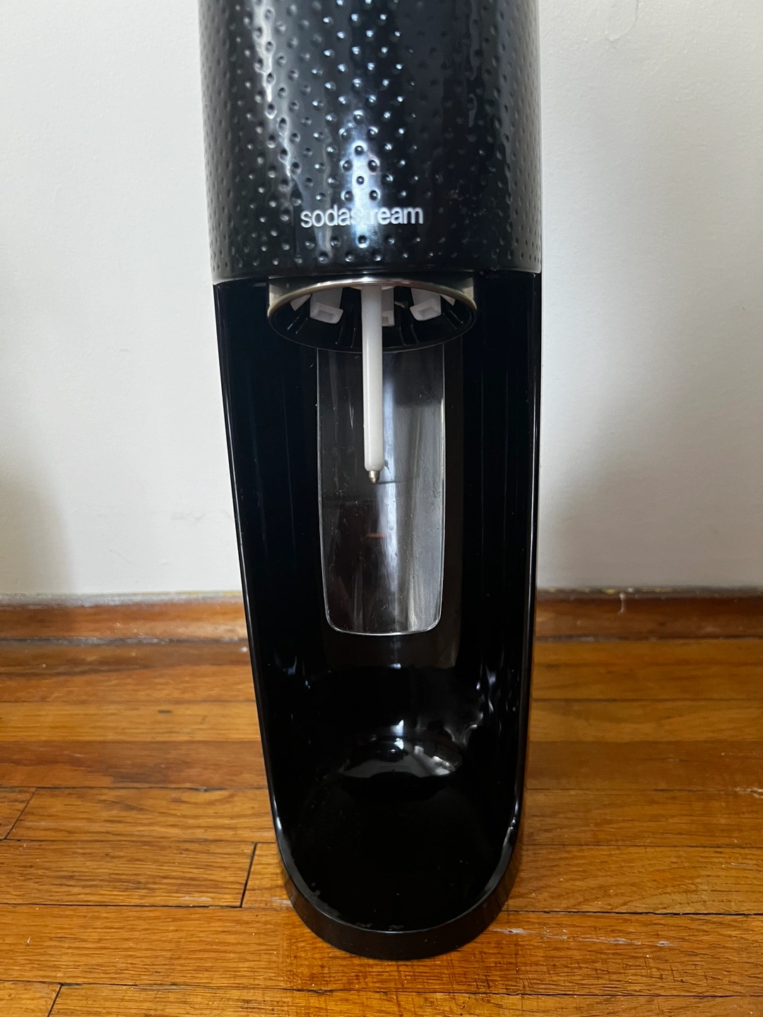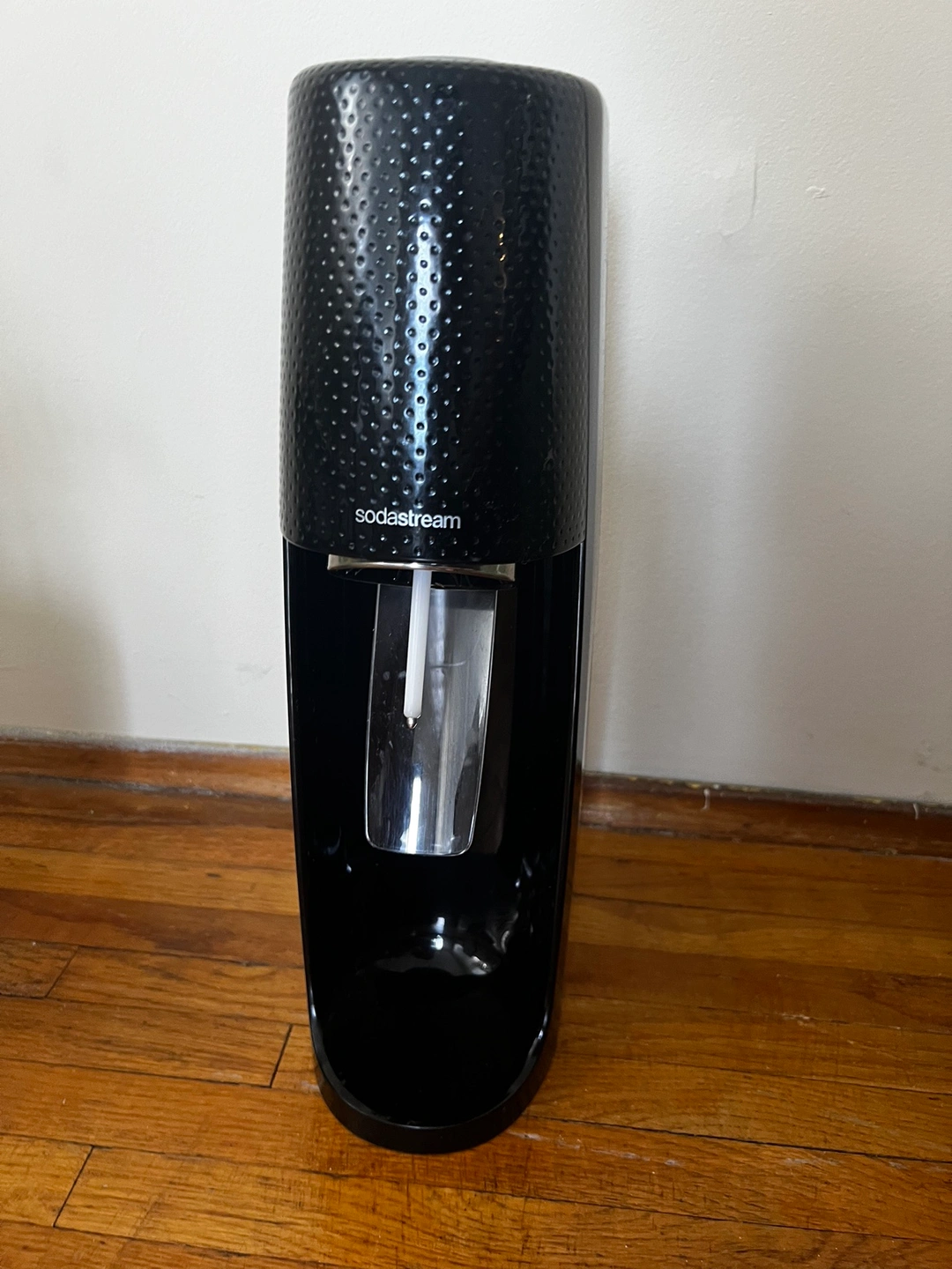 Black SodaStream Sparkling Water Maker. Includes one carbonating bottle. Does not include CO2 canisters.