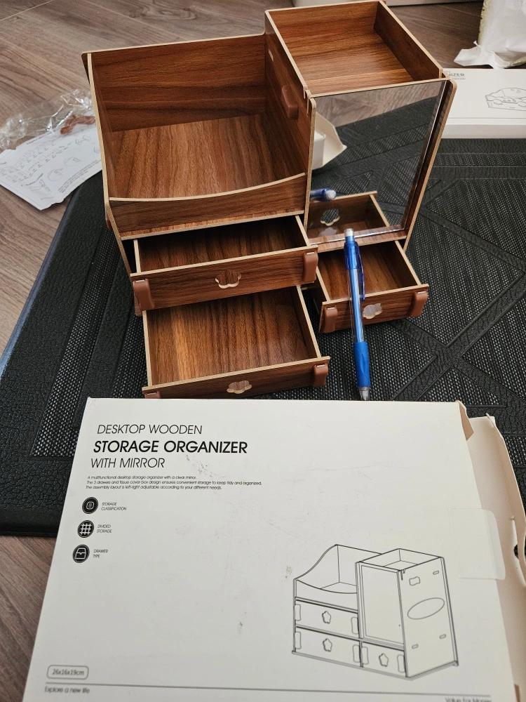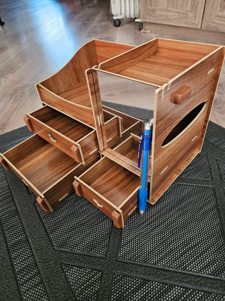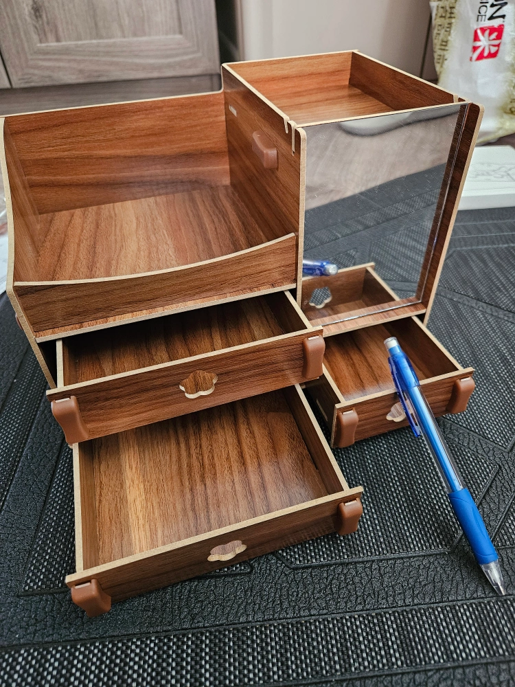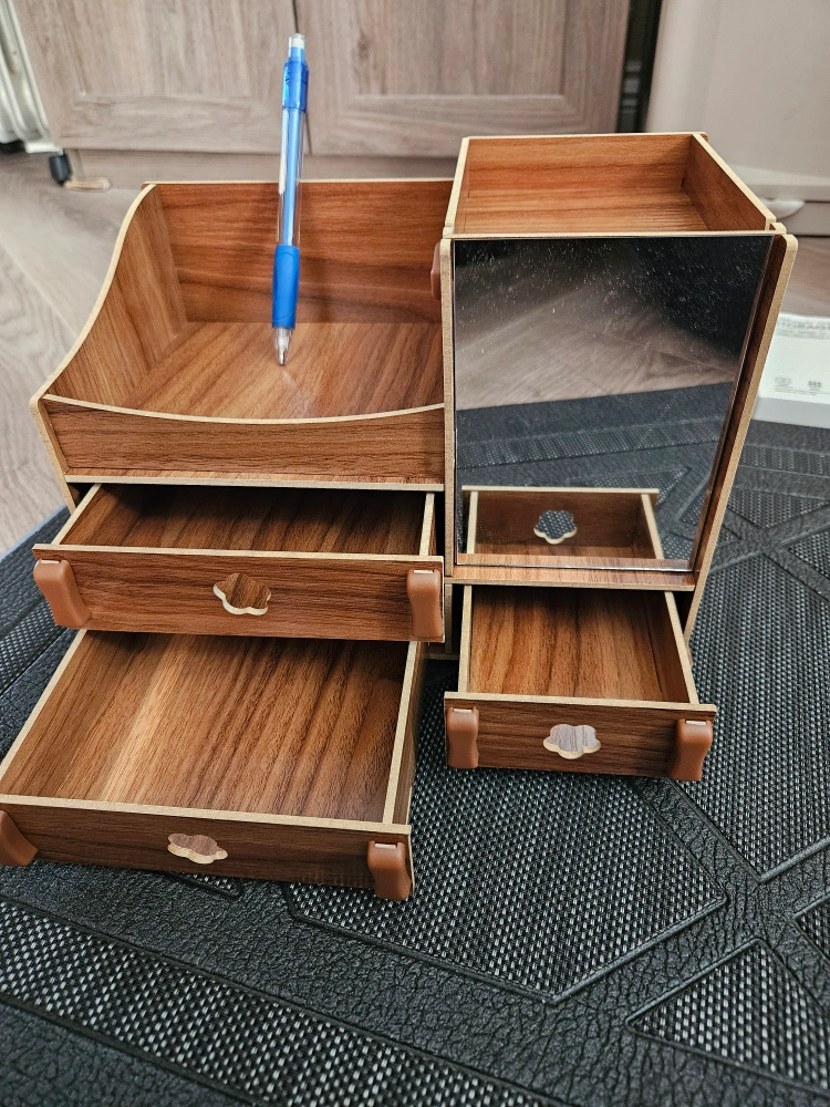 Desktop wooden storage organizer with mirror (DIY pre-build)