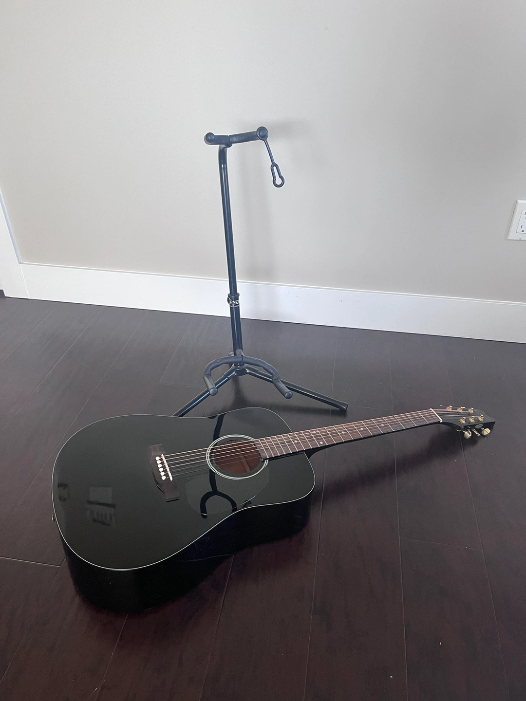 Denver Black Acoustic Guitar. Comes with stand.