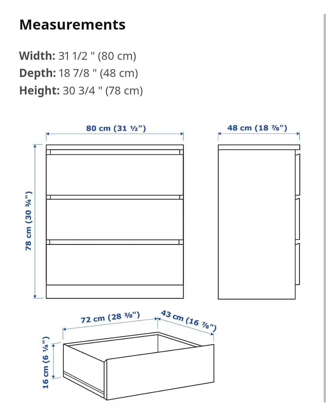 I have 2 Malm 3 drawer dressers in black-brown for sale.