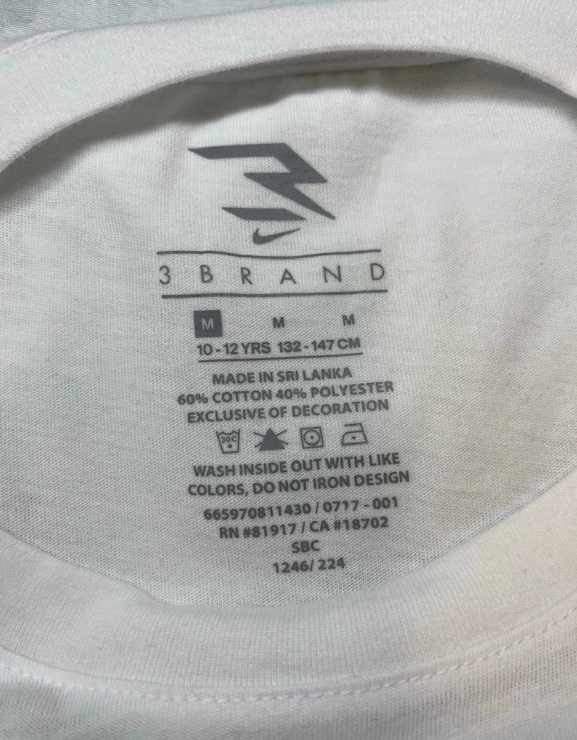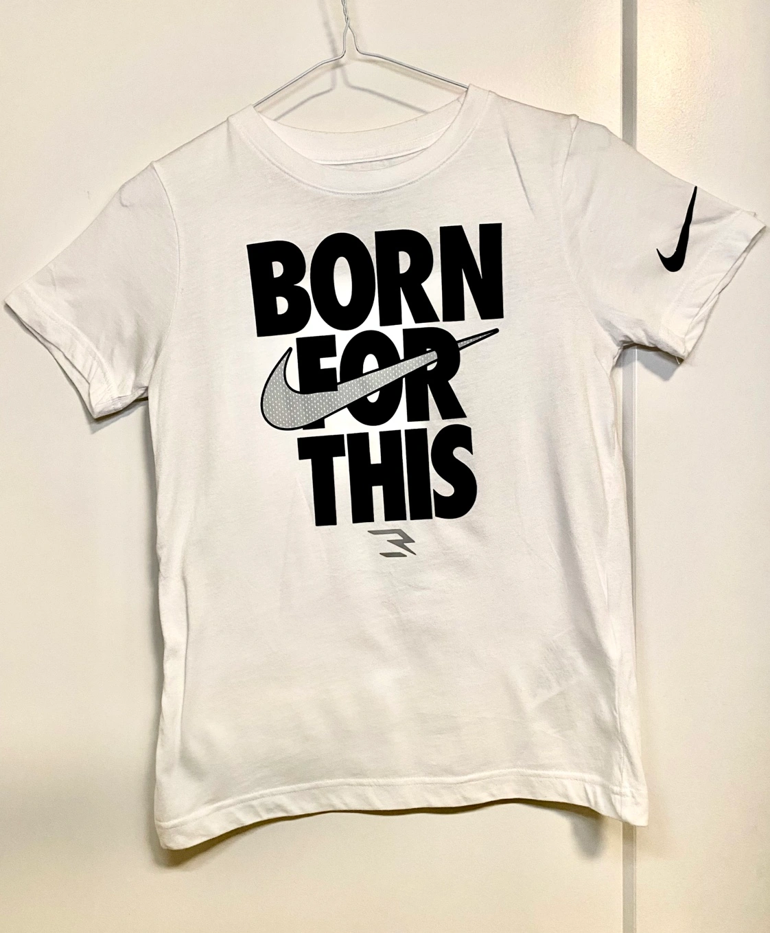 20Nike 3BRAND By Russell Wilson Big Boys 10-12 YRS White Short Sleeve Born For This T-Shirt 99% NEW (only used for once) Please feel free to contact me! White Nike t-shirt with "Born For This" graphic and Swoosh logo. Size M (10-12 years). Made in Sri Lanka. 60% cotton, 40% polyester. Machine wash cold.