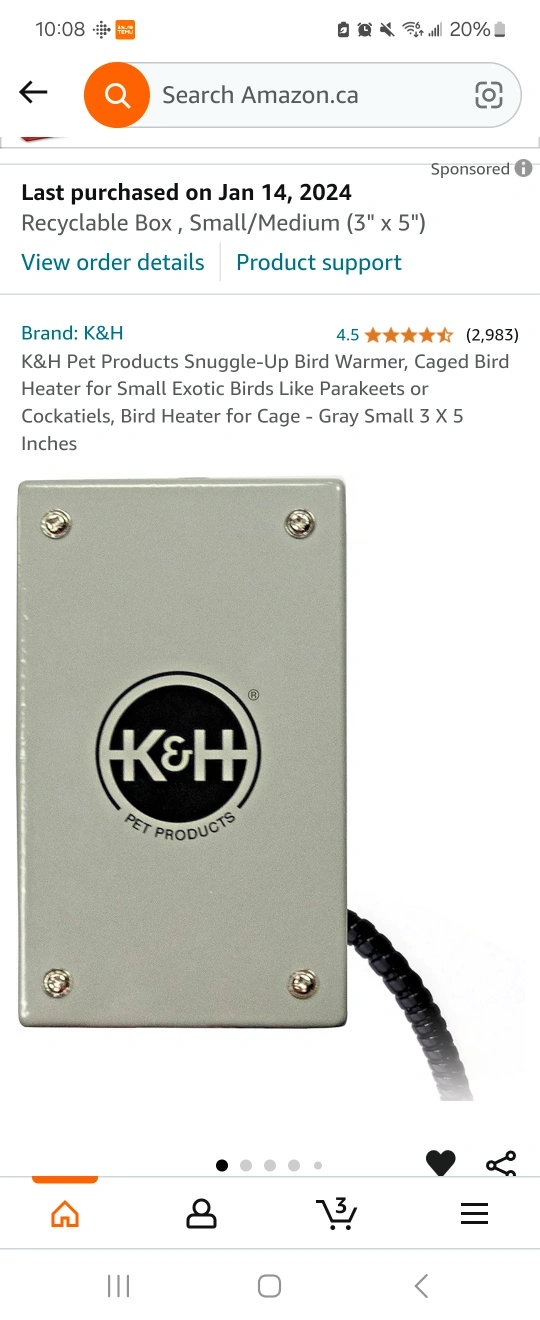 Snuggle-Up Bird Warmer, Bird Cage Heater (small exotic birds) π₯