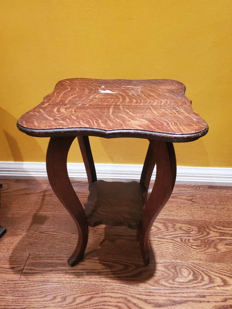 Antique Quarter Cut Oak Side Table / Plant Stand