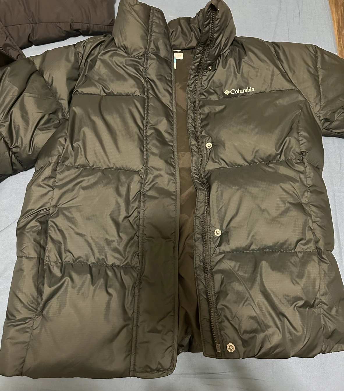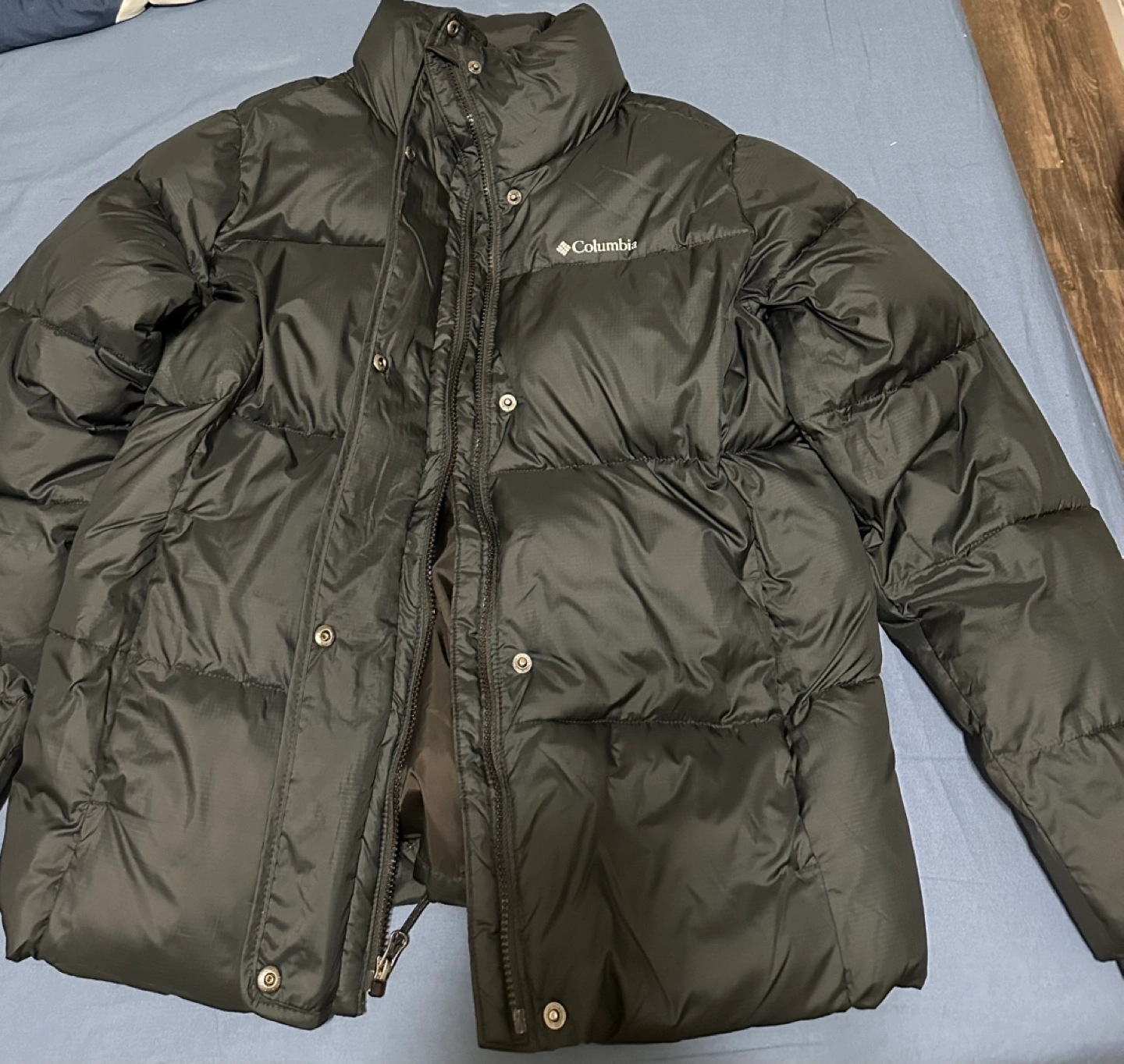 Women’s size Large black puffer jacket. It has a zipper and button. Cant return as i got rid of the bill