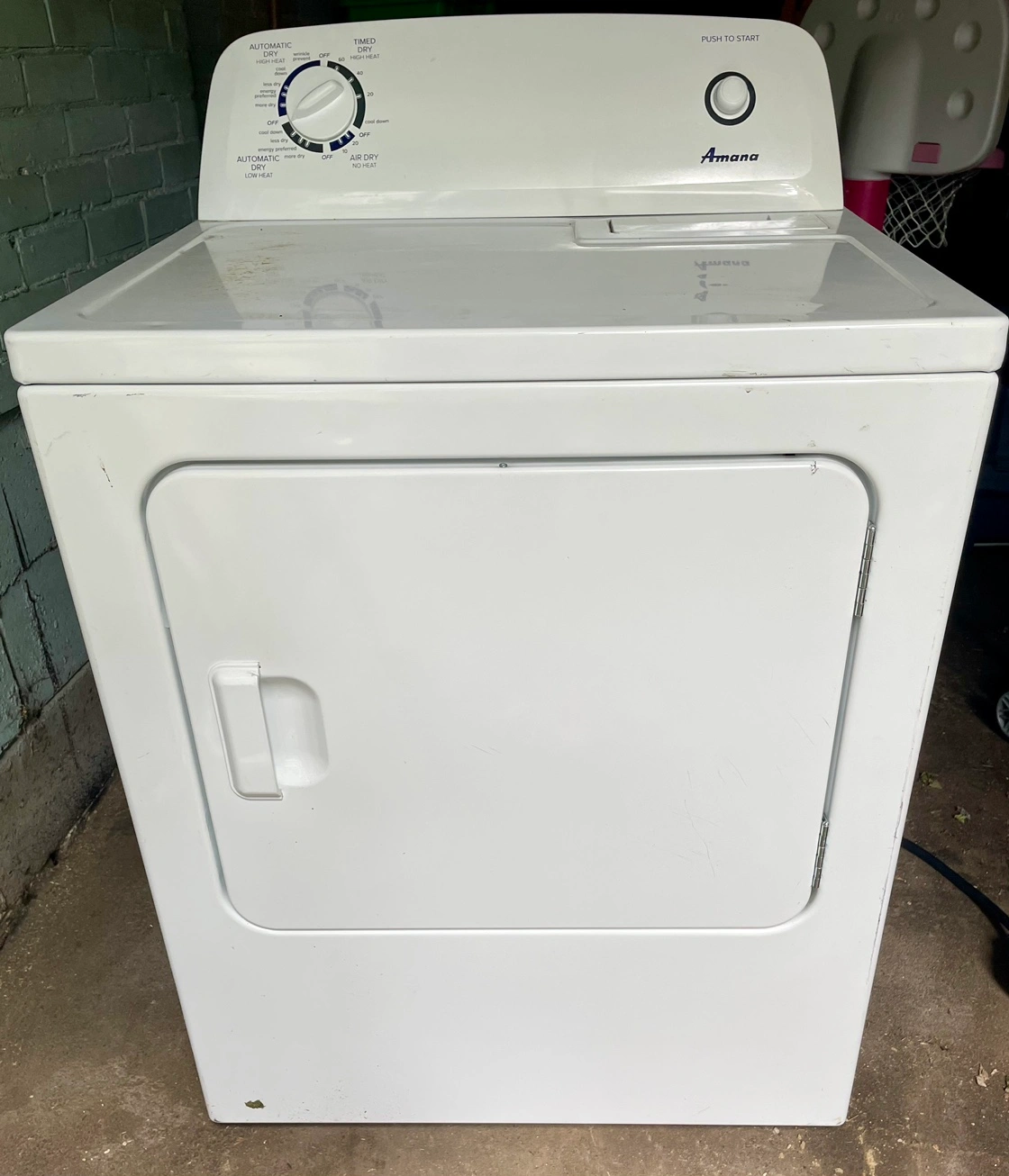 Working washer and dryer. Open to gifting together or separately. The lid of the washer requires a new rubber hinge, can be purchased or wash cycle used with the lid place.