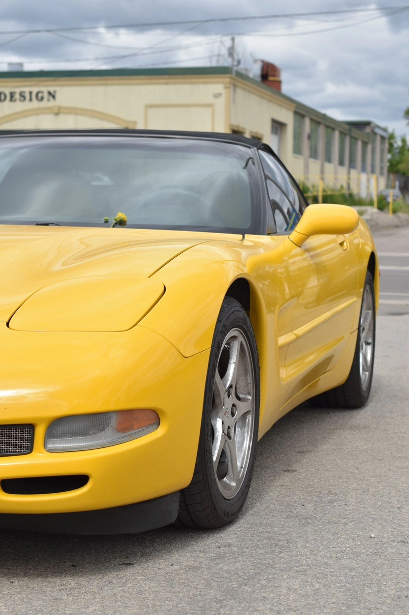 Yellow Corvette convertible with black interior and black top. Automatic transmission. 5.7L engine.