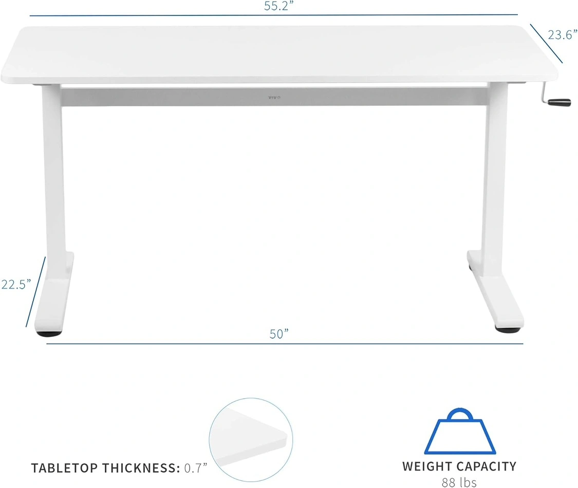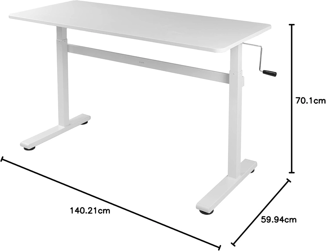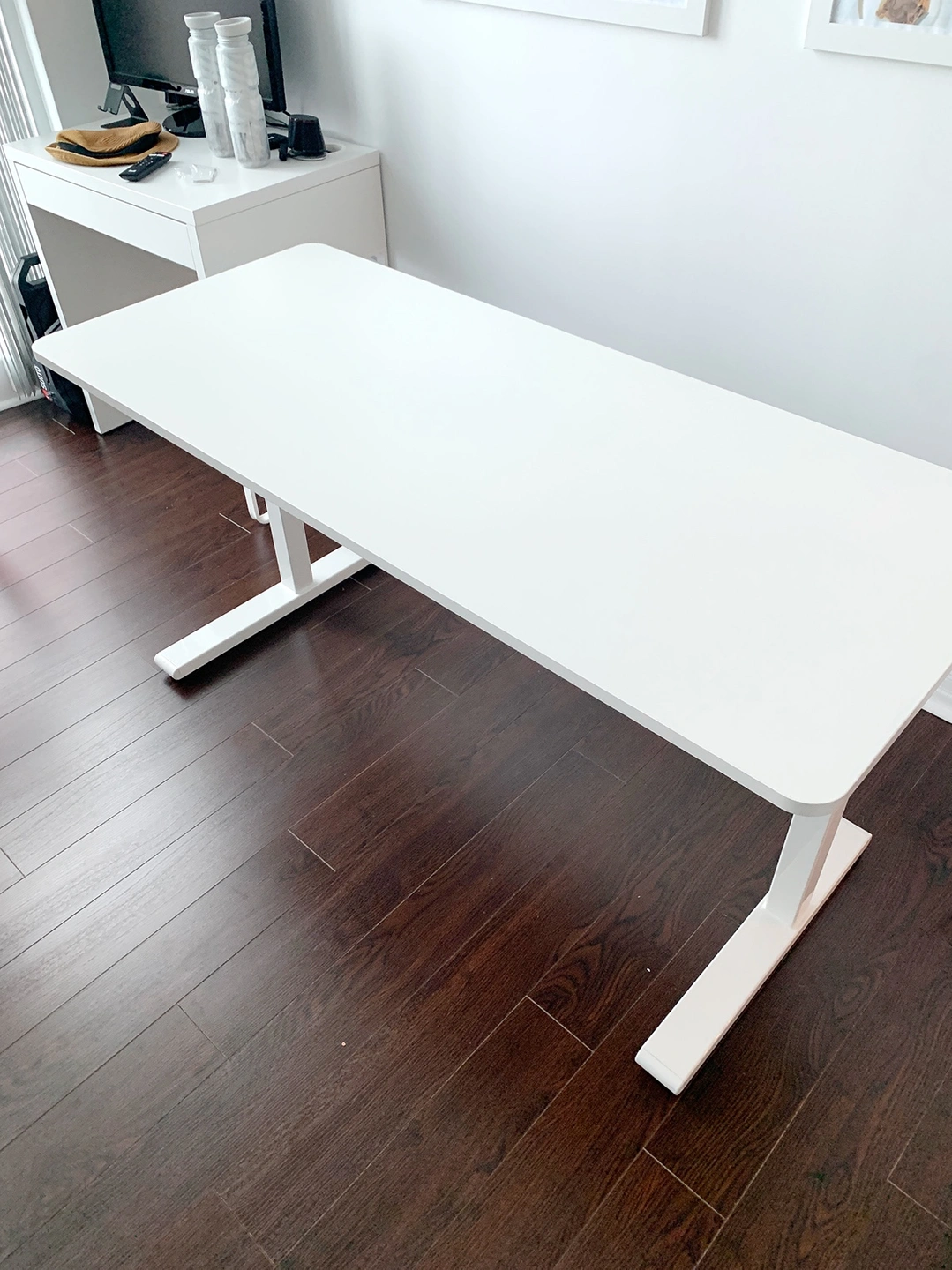 43Desk in amazing condition, table top looks like new, no scratches, barely used. There is a crank system to raise the height. It works going up but a little bit hard to push it back to sitting position. Retail 250 plus tax