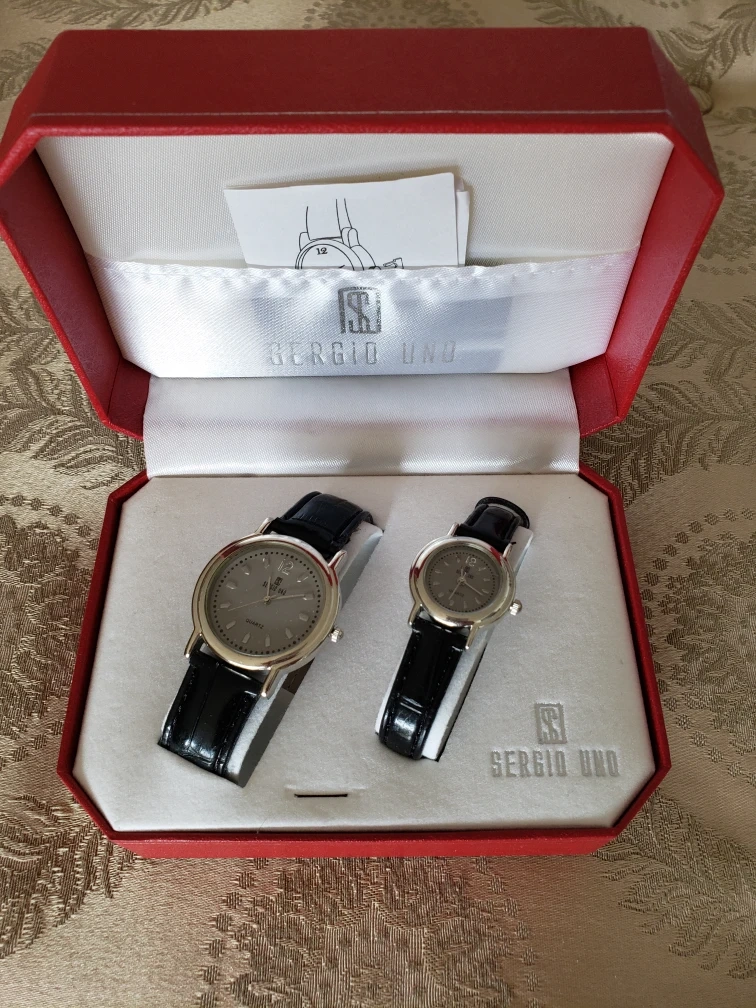 1000+This is a watch set for a couple, including a woman's watch and a man's watch. It comes with a box. makes a great gift ๐ needs battery