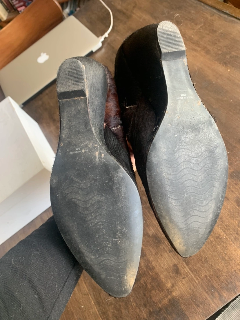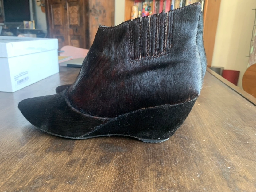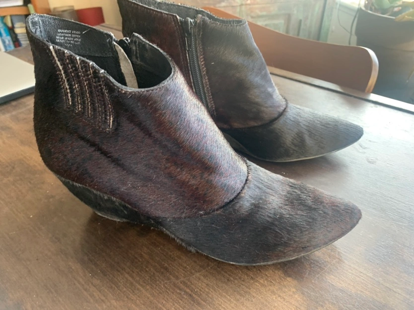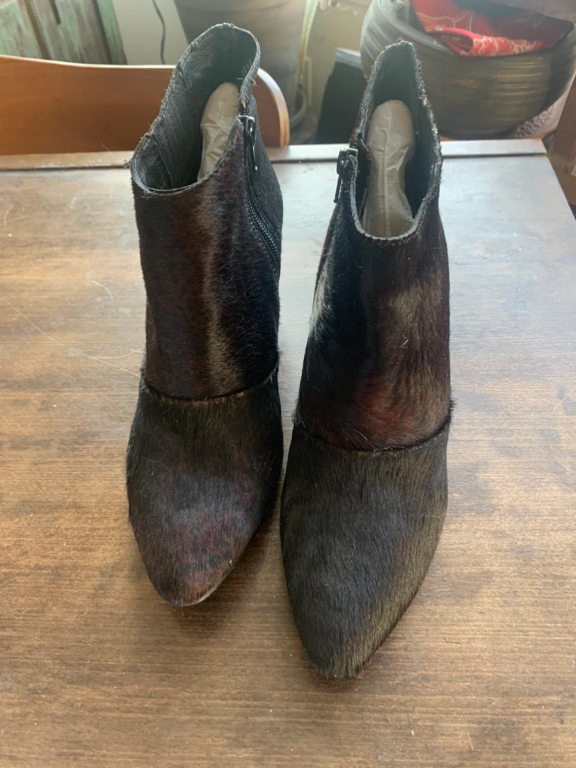 These are beautiful, stylish booties that would be perfect for any occasion. They are in great condition and have been worn only a few times. Purchase from Poshmark and worn once but they are slightly too big for me (I’m a size 9-9.5). From a pet-friendly, smoke-free home. With side zipper.