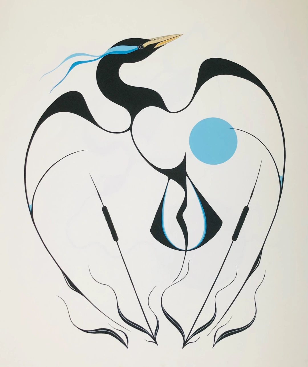 150Wally Kakepetum is a First Nations / Indigenous Canadian artist from Sandy Lake First Nation in northwestern Ontario. He’s part of the Kakepetum artistic family/dynasty — a family with multiple artists. Wally also belongs to the Crane Clan in his community. 24"H x 20"W Original Print. Minor spotting on bottom which would be concealed during framing.